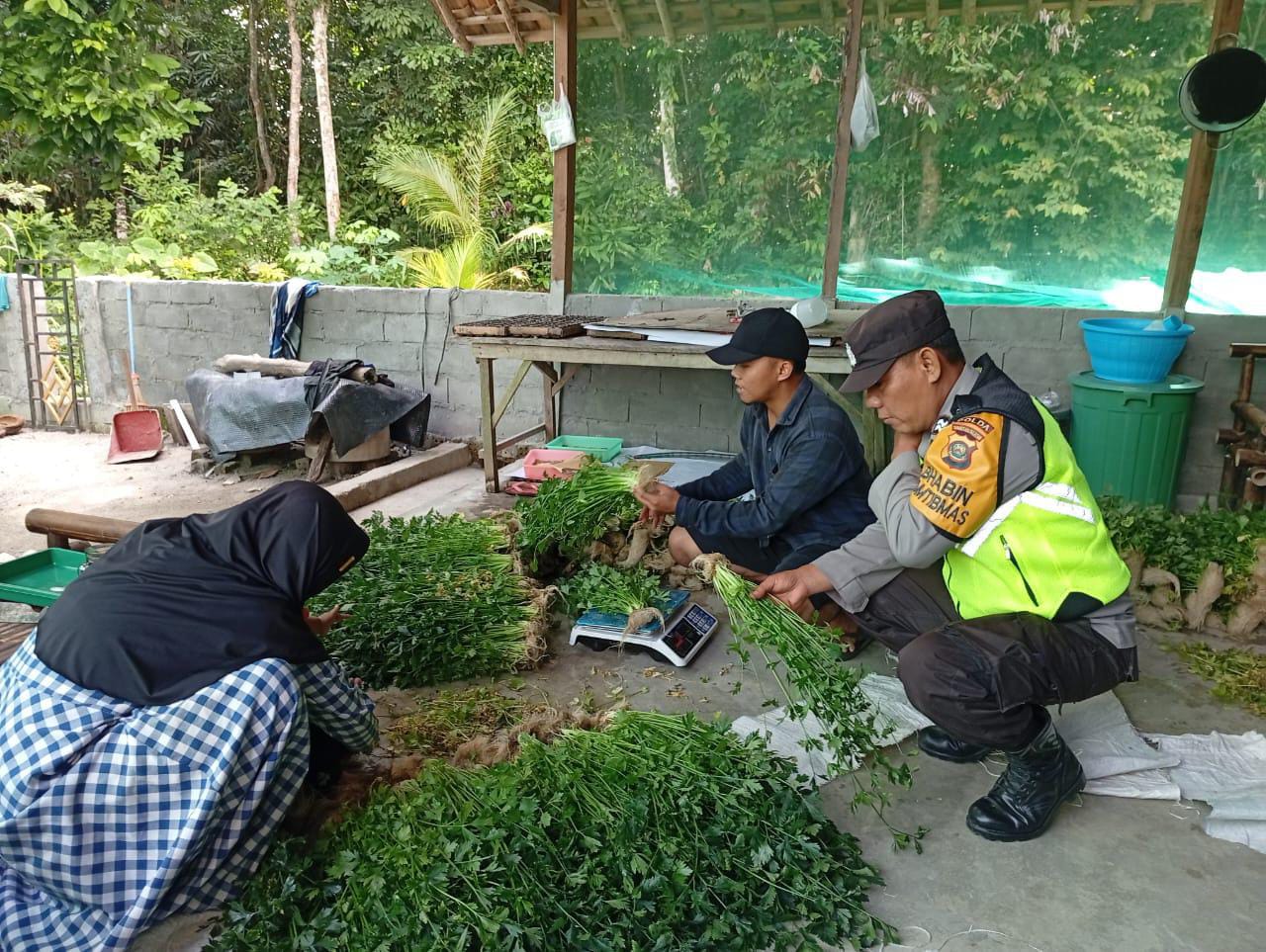INEWSFAKTA.COM | Oku Timur – Bhabinkamtibmas Polsek Buay Madang, Polres Oku Timur, Polda Sumsel, Aiptu ,M. Burnan mengunjungi saudara Khalid Ismail yang sedang memanen Seledri di pekarangan rumah yang dimanfaatkan sebagai lahan produktif dikelola untuk menanam berbagai jenis sayuran secara hidroponik di Desa Kurungan Nyawa I, Kecamatan Buay Madang, Kab. Oku Timur. Kegiatan tersebut dalam rangka mendukung program pemerintah terkait pekarangan pangan bergizi untuk ketahanan pangan lokal, Kamis (04/09/2025).