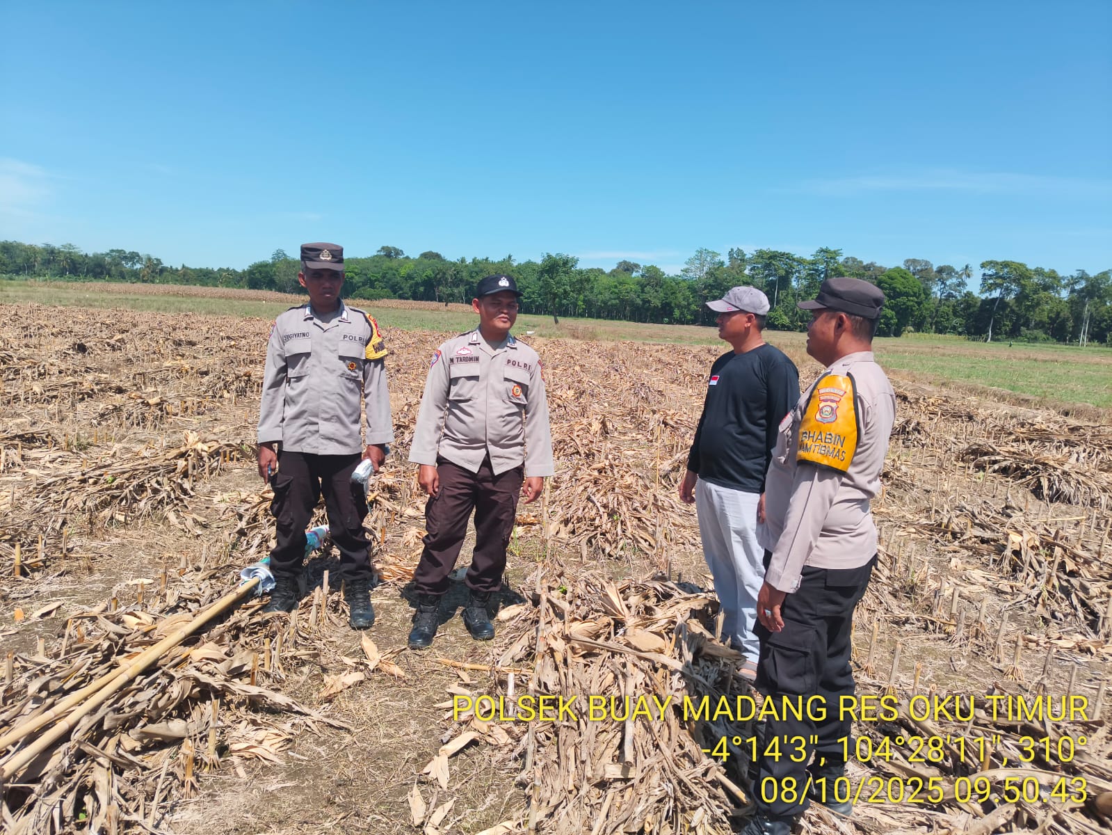 INEWSFAKTA.COM | OKU Timur – Anggota Buay Madang, Polres Oku Timur, Polda Sumsel, melaksanakan pengecekan persiapan lahan untuk tanaman Jagung Ketahanan Pangan di Desa Muncak Kabau, Kecamatan BP, Bangsa Raja, Kab. Oku Timur. Kegiatan tersebut upaya mendukung Asta Cita Presiden Republik Indonesia, Prabowo Subianto, khususnya di bidang ketahanan pangan menuju Indonesia Emas, Senin (20/10/2025).