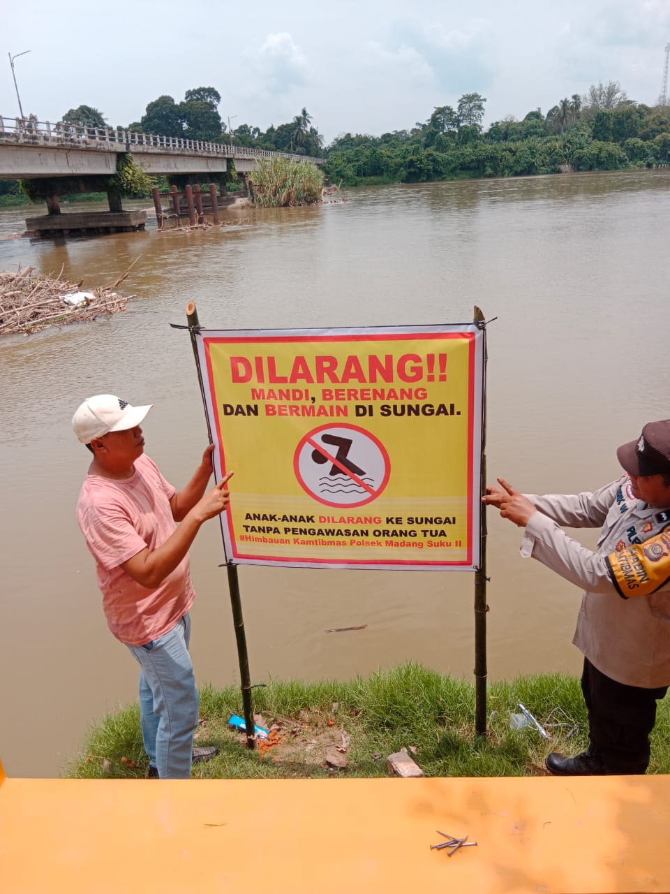 INEWSFAKTA.COM | Oku Timur – Personil Polsek Madang Suku II, Polres Oku Timur, Polda Sumsel, melaksanakan Pemasangan Spanduk Himbauan dan Larangan Bermain, Mandi dan Berenang di Sungai Komering Desa Nikan Kec. Madang Suku III Kab. OKU Timur, Jum’at (10/04/2026).