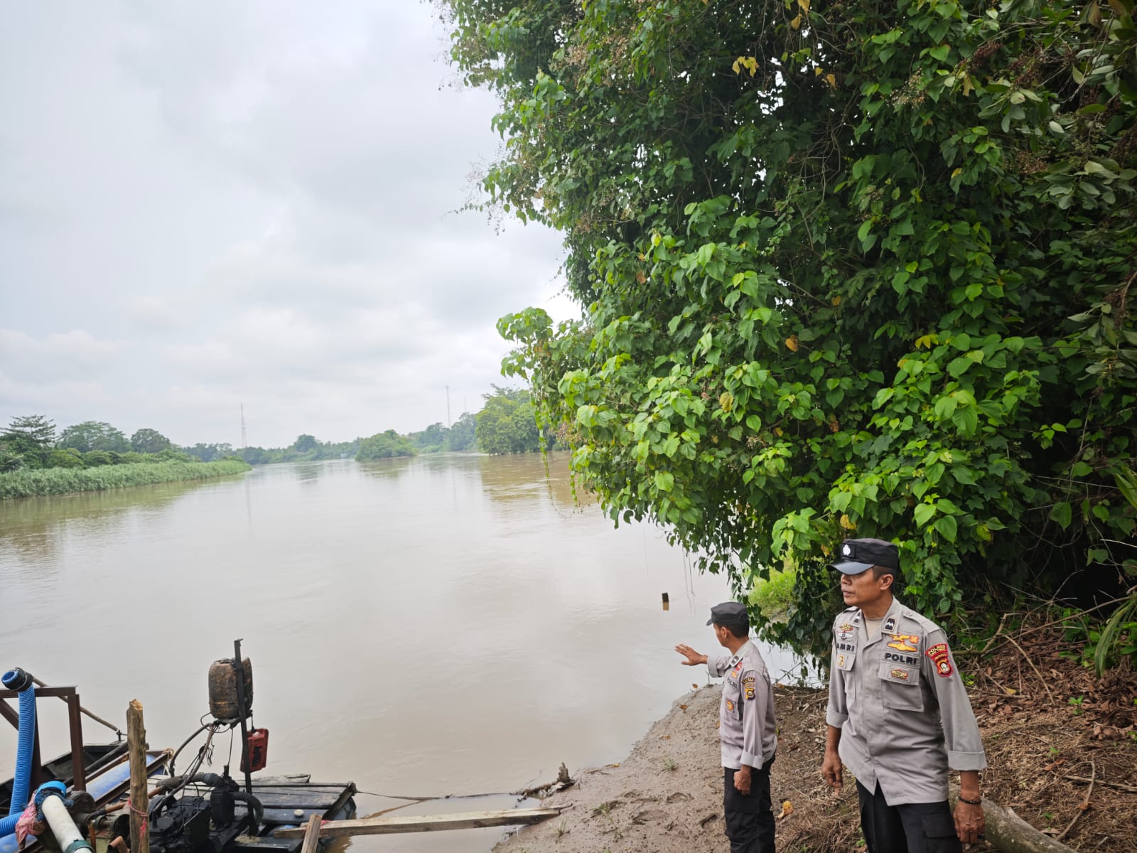 Antisipasi Air Meluap! Piket Polsek Buay Madang, Cek Debit Air Sungai Komering