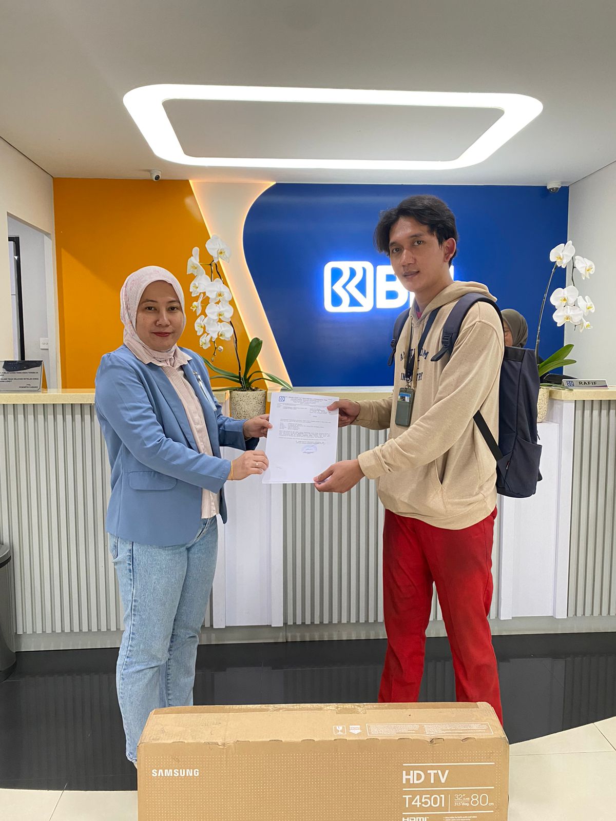 Penyerahan hadiah berupa televisi Samsung HD ini dilakukan secara simbolis di kantor cabang BRI Bandara Soekarno-Hatta.