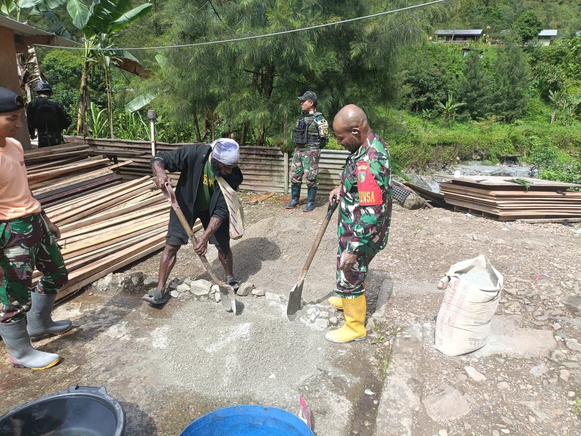 INEWSFAKTA.COM | Timika – Dalam rangka mewujudkan kemanunggalan TNI – Rakyat, Babinsa Koramil 1710-04/Tembagapura Pelda Indra R dan Serka Ikbertus Sumel melalui giar Binternya hari ini, membantu memperbaiki rumah di salah satu warga binaan an. bapak Anis Magai di Kp. Banti 2, Distrik Tembagapura, Kab. Mimika, Selasa (25/11/2025).