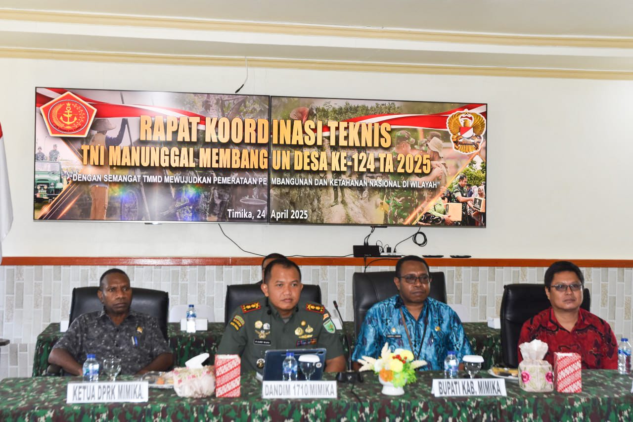INEWSFAKTA.COM | Timika – Komandan Kodim (Dandim) 1710/Mimika, Letkol Inf M. Slamet Wijaya, S. Sos., M. Han., M.A. bersama Forum Koordinasi Pimpinan Daerah (Forkopimda) Kabupaten Mimika mengikuti Rapat Koordinasi Teknis (Rakornis) TNI Manunggal Membangun Desa (TMMD) ke-124 secara virtual, yang diselenggarakan oleh TNI Angkatan Darat, Kamis (24/4/2025).