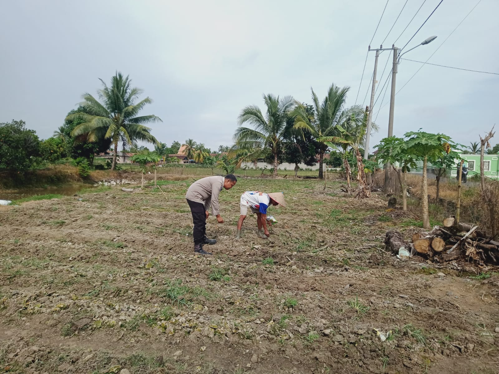 INEWSFAKTA.COM | Oku Timur-Personil Polsek Buay Madang, Polres Oku Timur, Polda Sumsel, melaksanakan pengecekan ketahanan pangan bergizi di pekarangan rumah milik saudara Ilham yang dimanfaatkan untuk ditanami kacang tanah dengan luas lahan 15 x 40 M² di Desa Sukaraja Kec. Buay Madang, Kab. Oku Timur, Sabtu (20/12/2025).