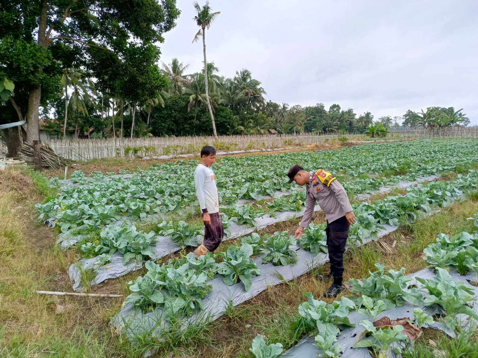 INEWSFAKTA.COM | Oku Timur – Anggota Polsek Buay Madang, Polres Oku Timur, Polda Sumsel, mengunjungi lahan milik seorang petani lokal yang memanfaatkan lahan pekarangannya untuk menanam Brokoli di Desa Tebat Jaya, Kecamatan Buay Madang, Kab. Oku Timur. Anggota Polsek Buay Madang memberikan dukungan kepada warga tersebut atas inovasi dan pemanfaatan lahan secara produktif, yang berkontribusi mendukung Program Ketahanan Pangan nasional di wilayah hukum Polsek Buay Madang, Kamis (12/03/2026).