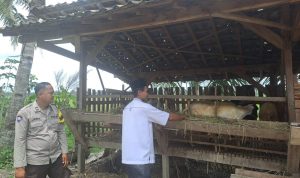 INEWSFAKTA.COM | Oku Timur – Bhabinkamtibmas Polsek Buay Madang, Polres Oku Timur, Polda Sumsel, Dalam rangka mendukung Program Asta Cita Presiden RI, melaksanakan kegiatan Program Ketahanan Pangan dengan mengunjungi Peternak Kambing di Desa Binaan yang bertempat di Desa Tebat Jaya, Kecamatan Buay Madang, Kab. Oku Timur, Rabu (27/08/2025).