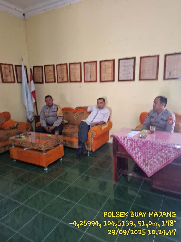 INEWSFAKTA.COM | Oku Timur – Bhabinkamtibmas Polsek Buay Madang, Polres Oku Timur, Polda Sumsel, melaksanakan sambang dan patroli Dialogis, sekaligus menyampaikan pesan kamtibmas Di Kantor Desa Surya Menang , Kec. BP, Bangsa Raja, Kab. Oku Timur, Senin (23/02/2026).