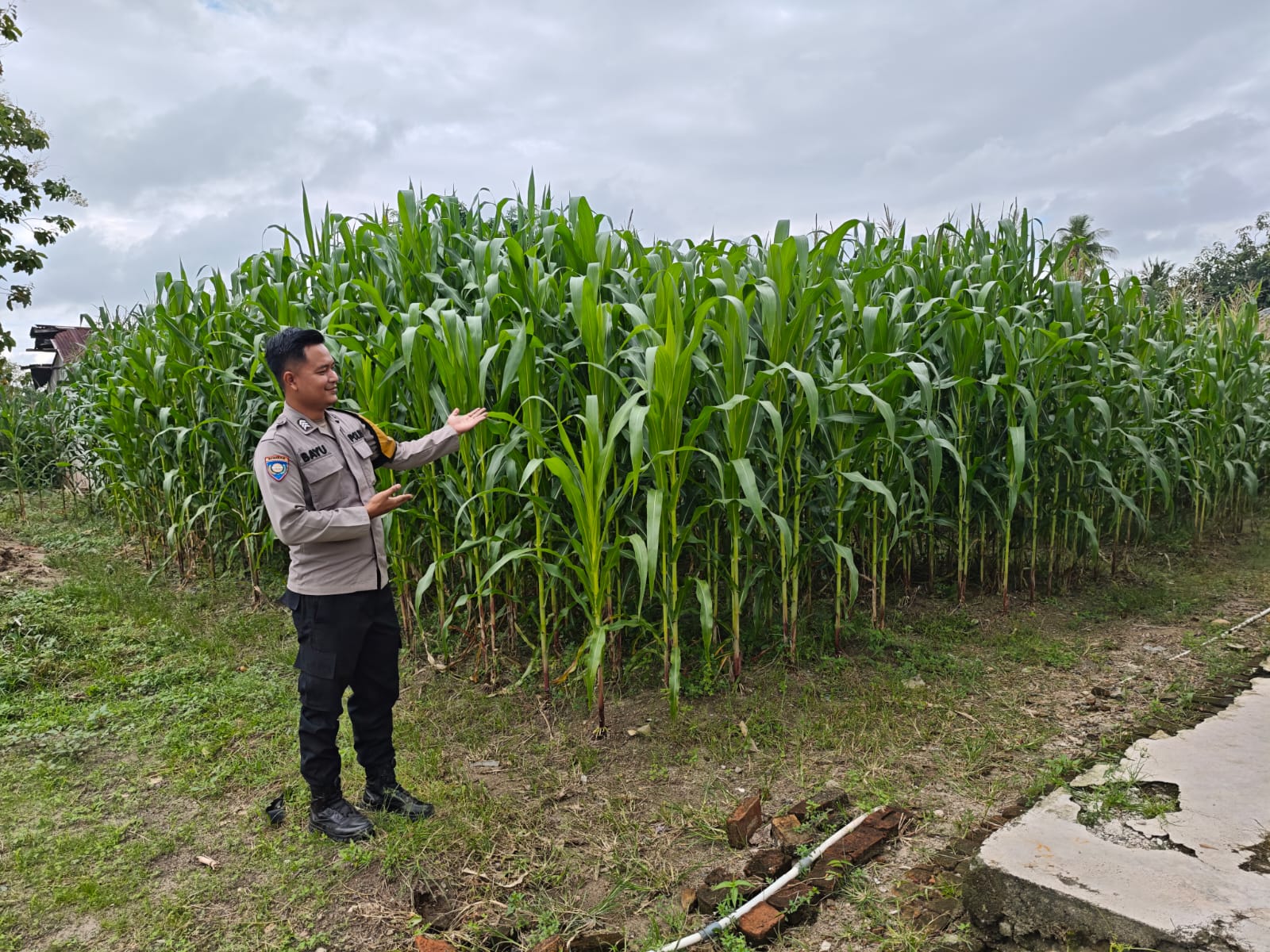 INEWSFAKTA.COM | Oku Timur – Personil Polsek Buay Madang, Polres Oku Timur Polda Sumsel, melaksanakan monitoring Jagung dipekarangan milik warga binaan Desa Mulyo Agung, Kecamatan Buay Madang,Kab. Oku Timur. Kegiatan tersebut upaya mendukung Asta Cita Presiden Republik Indonesia, Prabowo Subianto, khususnya di bidang ketahanan pangan menuju Indonesia Emas, Kamis (12/03/2026).