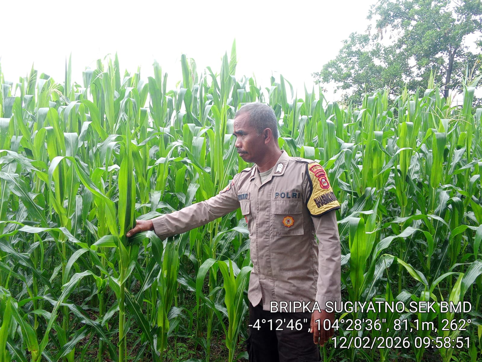 Bhabinkamtibmas Polsek Buay Madang, Monitoring Pertumbuhan Jagung Ketahanan Pangan Di Desa Mulyo Agung