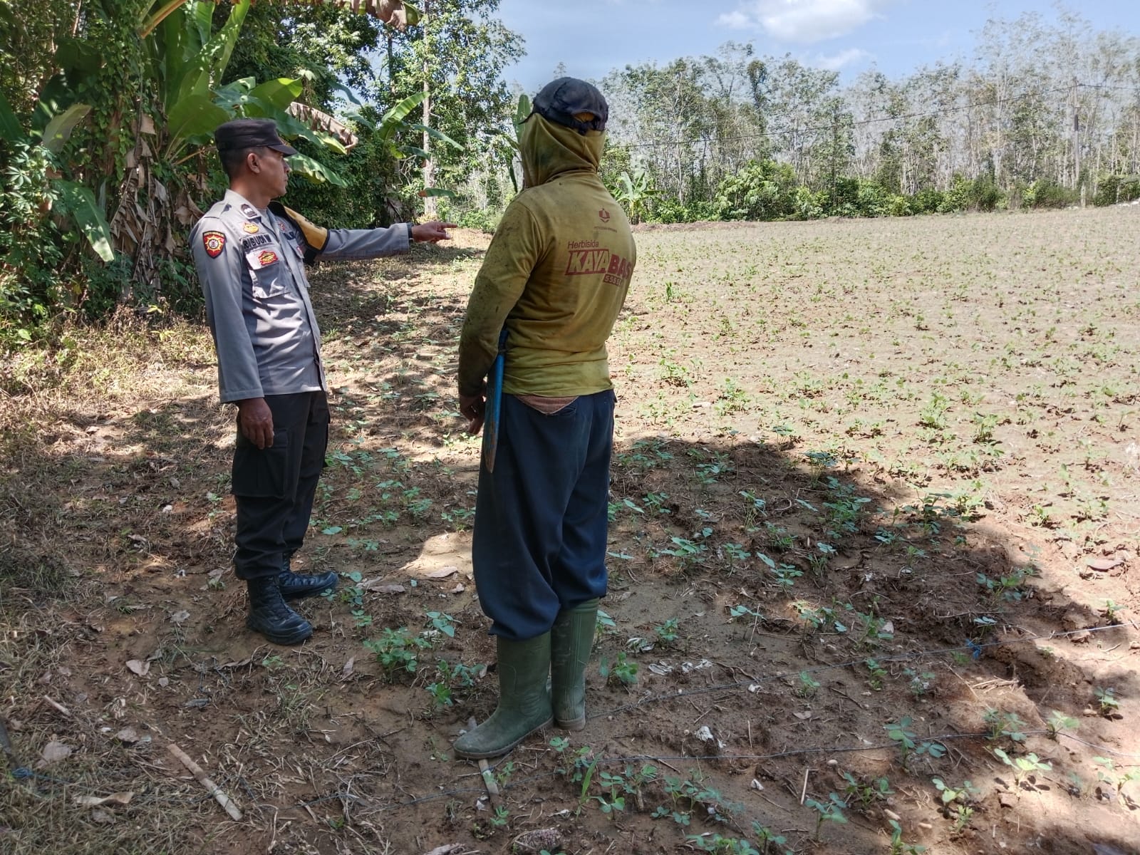 Dalam kunjungannya, Bhabinkamtibmas berdialog langsung kepada pemilik lahan untuk mengetahui proses penanaman, perawatan tanaman, dan perkembangan hasil pertanian.