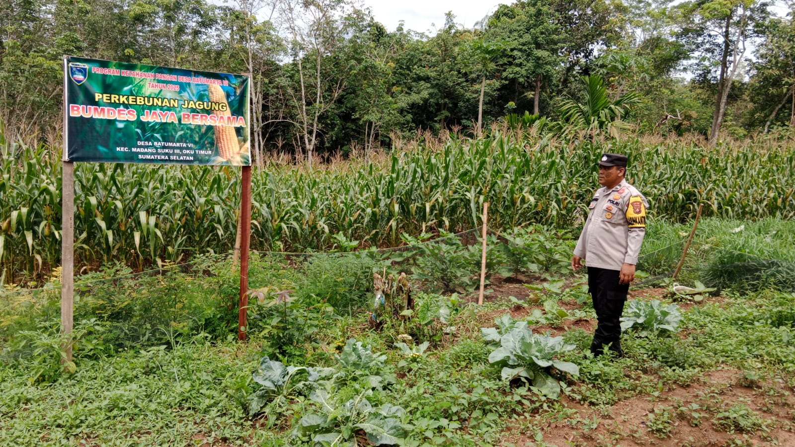 INEWSFAKTA.COM | Oku Timur – Bhabinkamtibmas Polsek Madang Suku II, Polres Oku Timur, Polda Sumsel, Dalam rangka mendukung Asta Cita Presiden RI, melaksanakan kegiatan pengecekan lahan ketahanan pangan berupa tanaman Jagung di Desa Batumarta VI Kec. Madang Suku III Kab. Oku Timur, Minggu (04/01/2026).