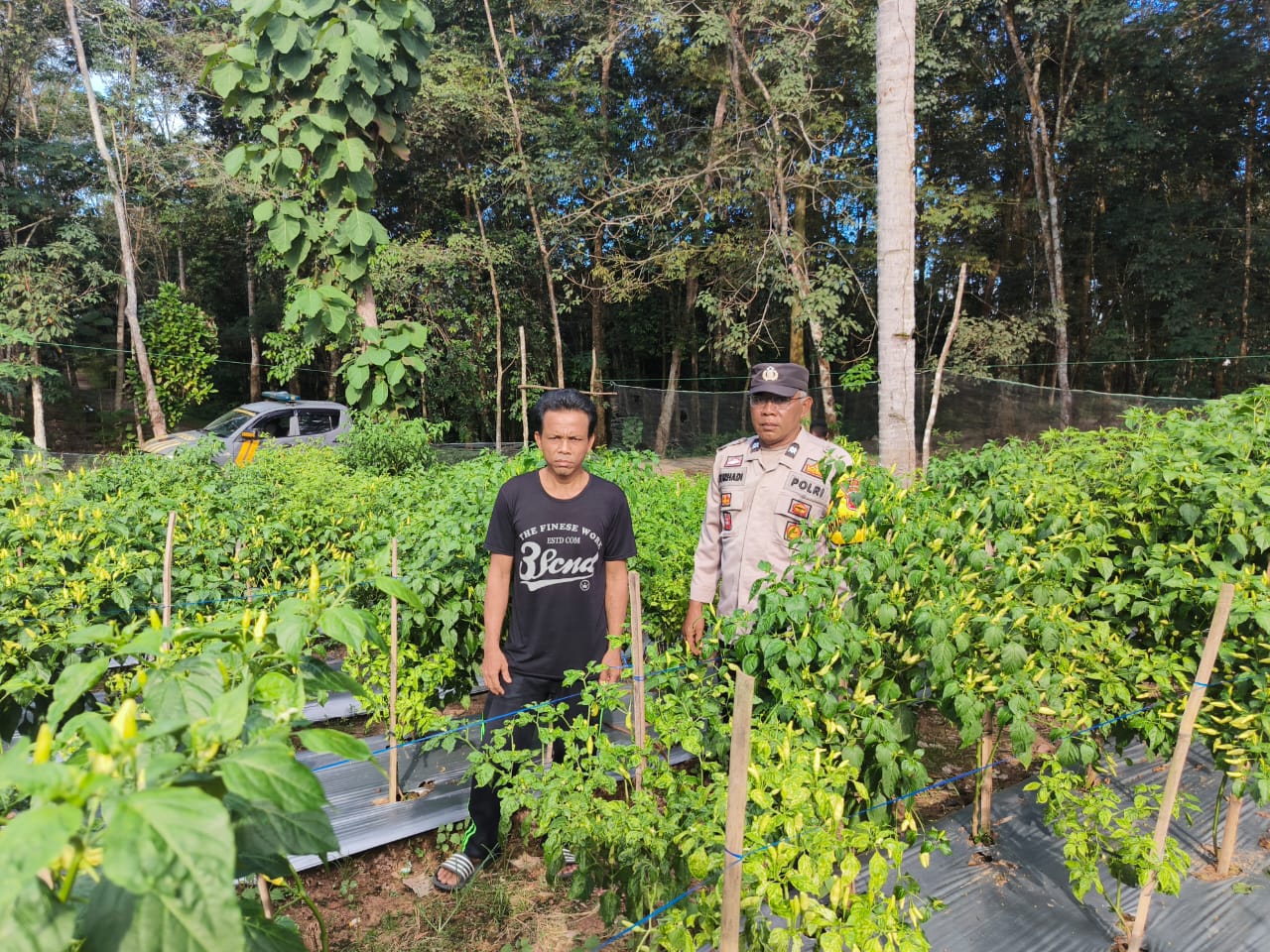 Dalam kunjungannya, Bhabinkamtibmas Polsek Madang Suku II Bripka Alex Rudiantoro berdialog langsung kepada pemilik lahan untuk mengetahui proses penanaman, perawatan tanaman, dan perkembangan hasil pertanian.