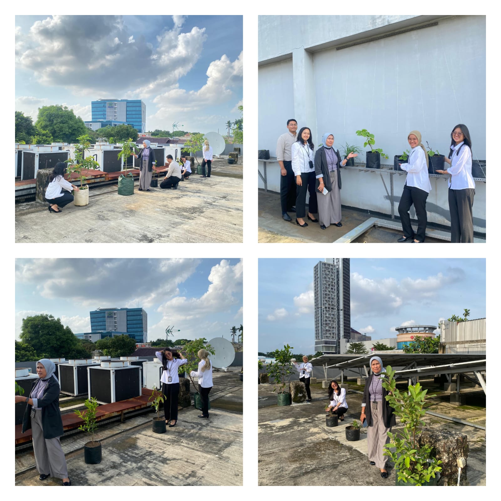 Pemanfaatan rooftop sebagai ruang hijau ini dilakukan dengan menanam beragam tanaman hijau yang tidak hanya berfungsi sebagai elemen estetika, tetapi juga membantu menciptakan lingkungan kerja yang lebih sejuk, sehat, dan produktif bagi para pekerja.