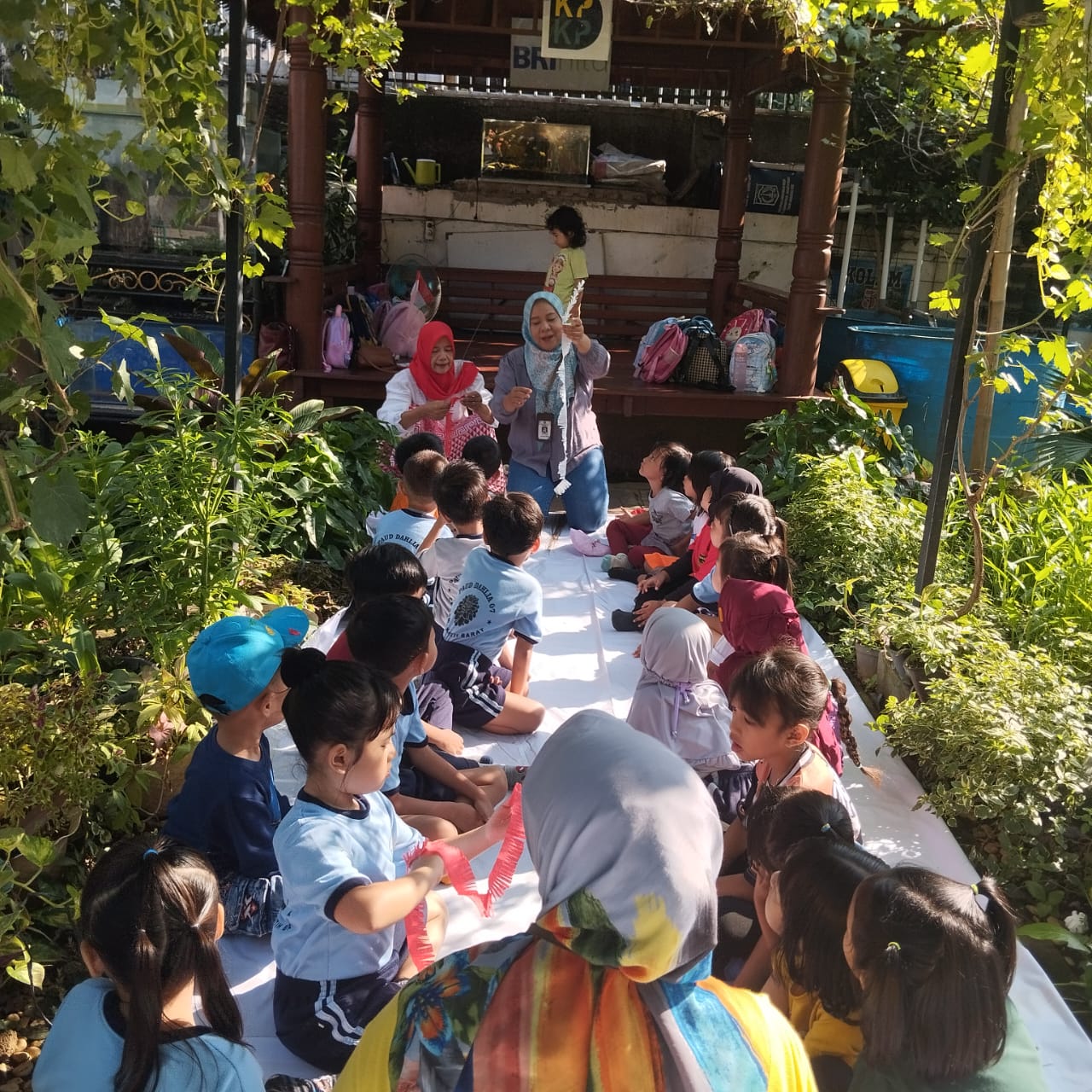 Selain pembelajaran praktis, kegiatan ini juga diisi dengan permainan edukatif, cerita interaktif tentang pentingnya menjaga lingkungan, serta sesi berbagi hasil panen sederhana yang telah ditanam sebelumnya.