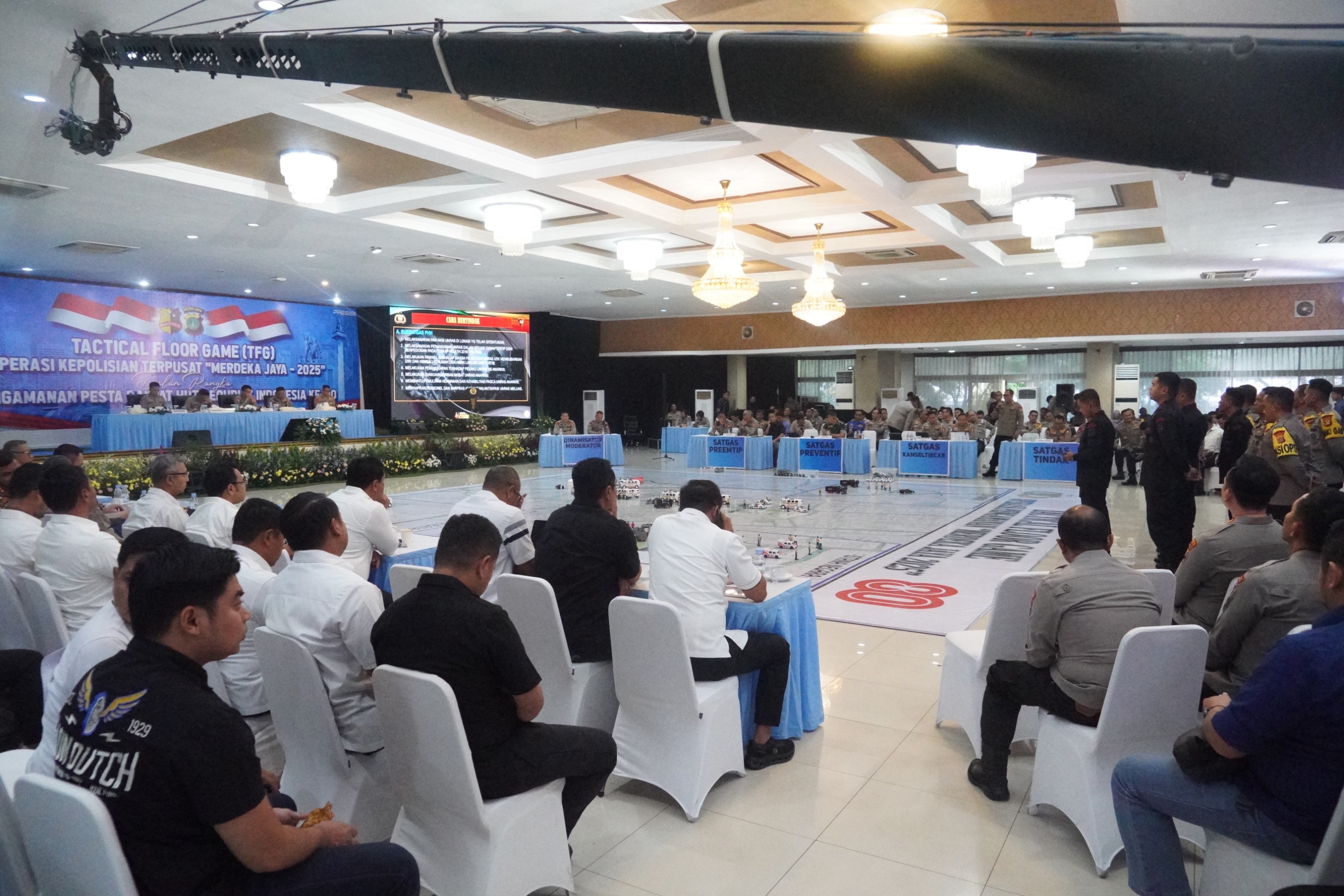 Seluruh unsur pengamanan melaksanakan simulasi taktis menggunakan peta dan miniatur untuk memvisualisasikan strategi, penempatan personel, pengendalian arus lalu lintas, hingga penanganan situasi darurat.