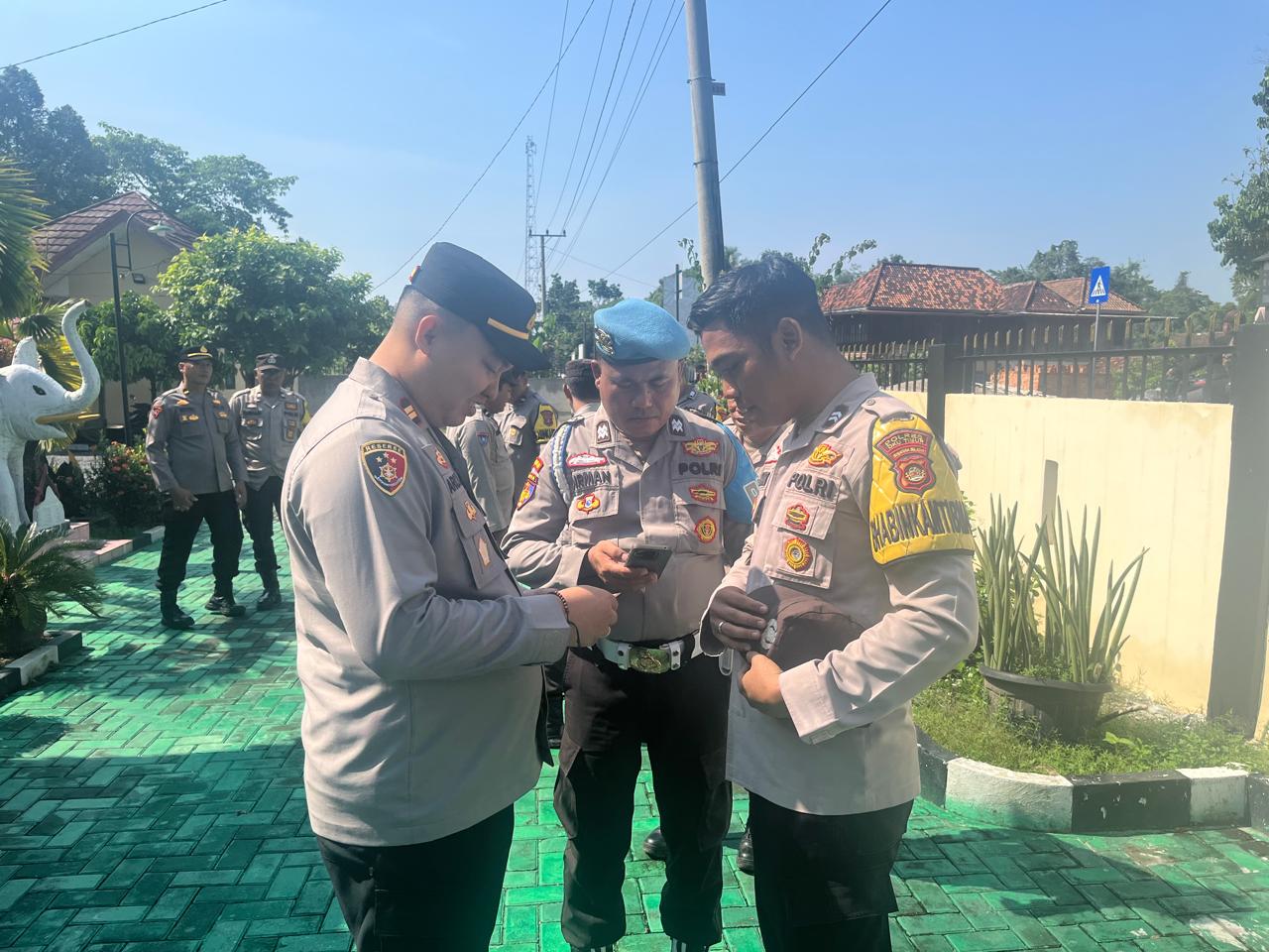 INEWSFAKTA.COM | Oku Timur – Kapolsek Madang Suku II, Polres Oku Timur, Polda Sumsel, IPTU Ario Wibowo, ST didampingi Kanit Provost Aiptu Sudirmansyah melakukan pengecekan HP Personil Polsek Madang Suku II Setelah pelaksanan apel Pagi di Halaman Mako Polsek, Rabu (05/11/2025).