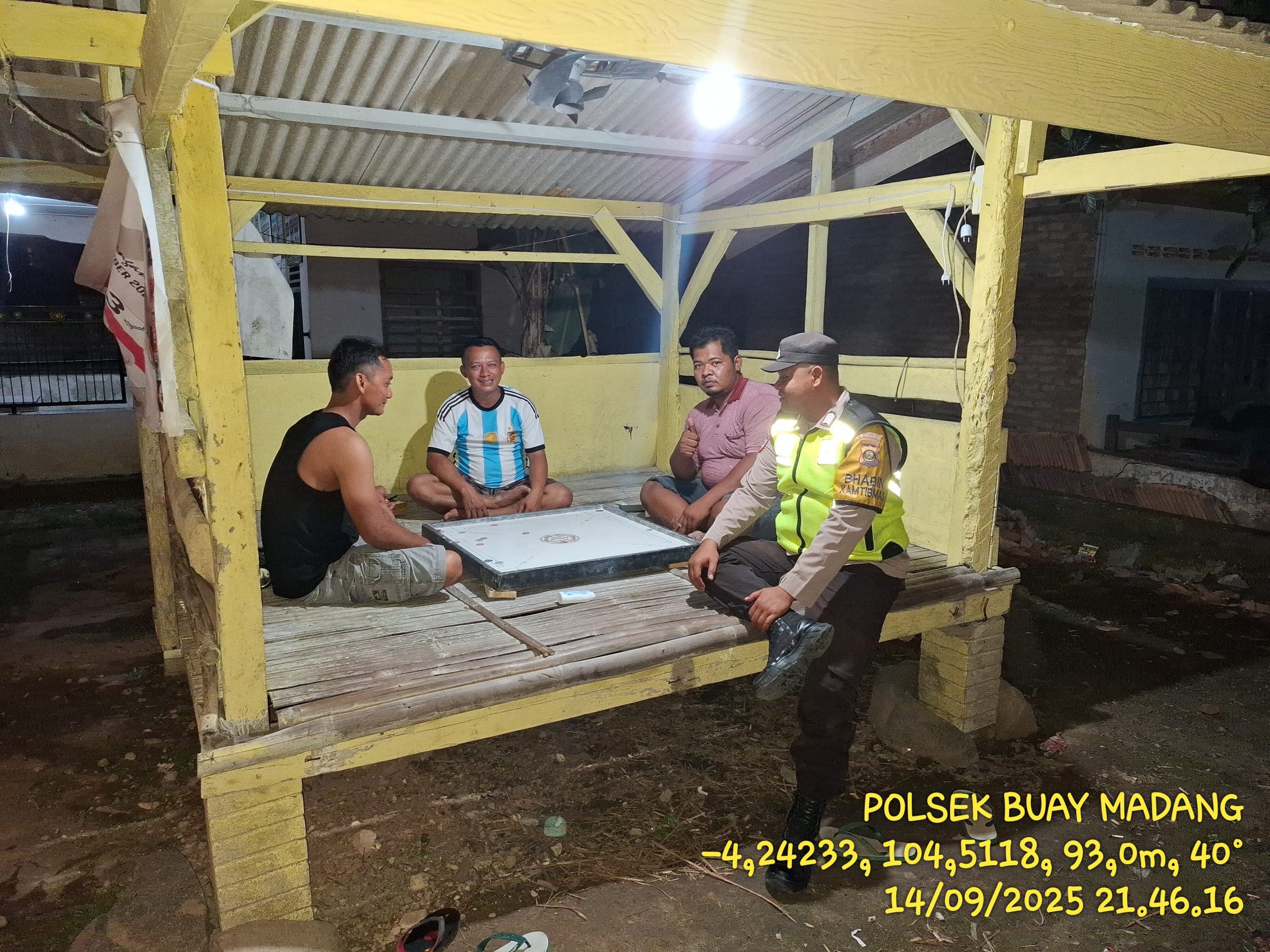 “Dalam kegiatan tersebut anggota menyampaikan pesan Kamtibmas kepada warga masyarakat di Pos Ronda tersebut dan meminta untuk menggiatkan kembali ronda malam.Kita himbau kepada masyarakat agar selalu menjaga keamanan dan ketertiban di lingkungan tempat tinggalnya, supaya tetap kondusif,” ucap Kapolsek Buay Madang, AKP. Suwandi.