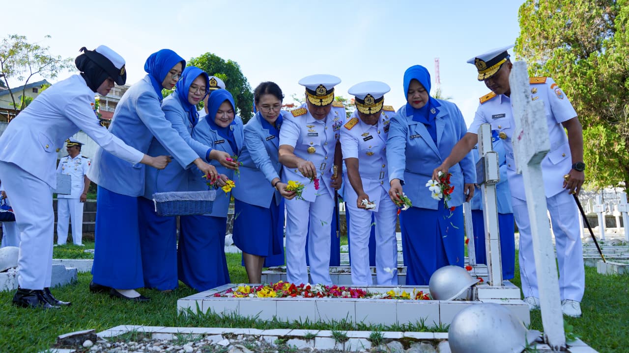 INEWSFAKTA.COM | TNI AL, Ambon,- Komandan Kodaeral IX Laksamana Muda TNI Hanarko Djodi Pamungkas, S.H., didampingi Ketua Kodaeral IX Gabungan Jalasenastri Koarmada RI Ny. Inca Hanarko Djodi Pamungkas laksanakan Ziarah Tabur Bunga, bertempat di Taman Makam Pahlawan Kapaha, Jumat (28/11/2025).