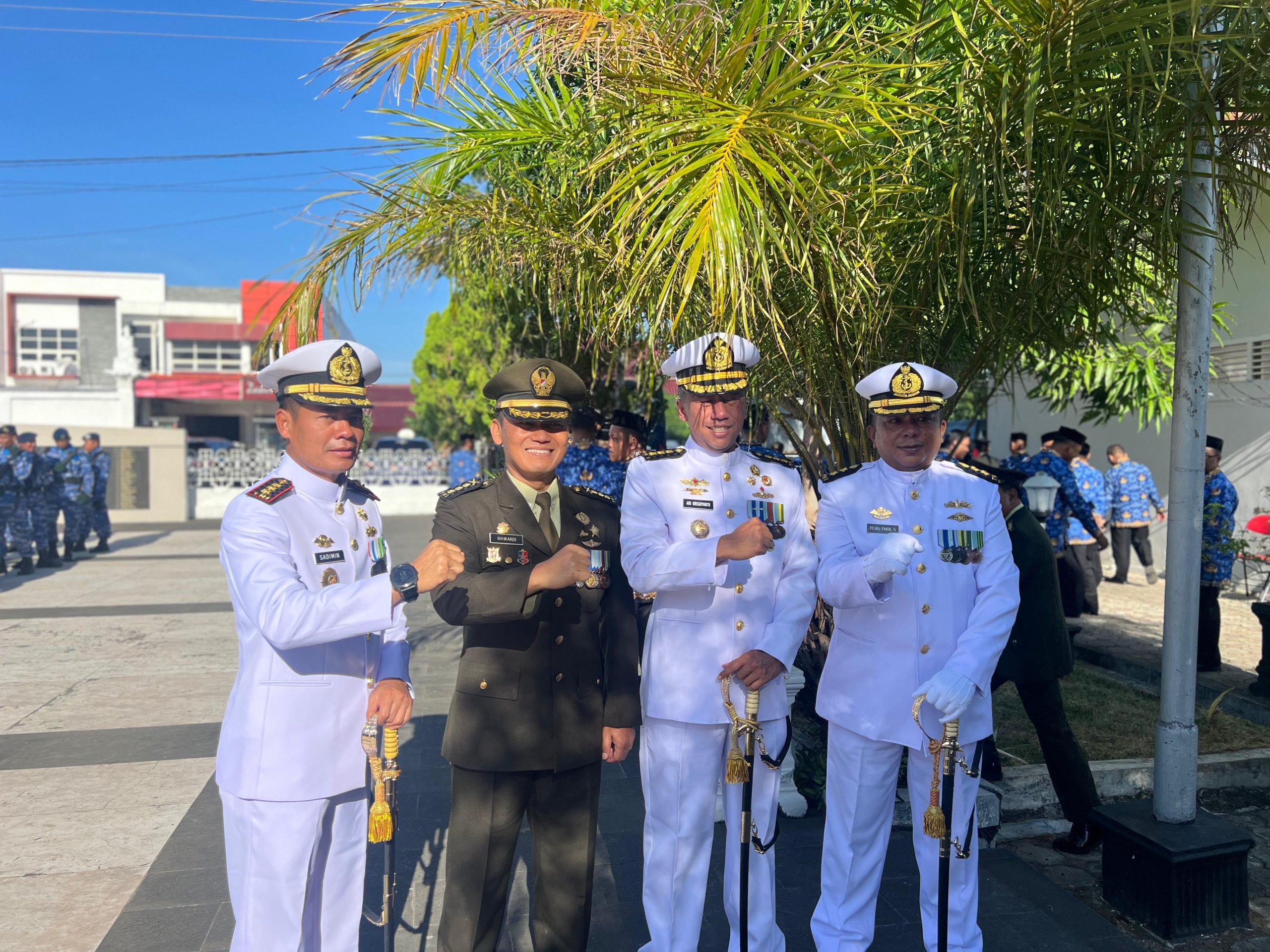 INEWSFAKTA.COM | TNI AL, Sabang,- Komandan Pangkalan TNI AL (Danlanal) Sabang Kolonel Laut (P) Sadimin, S.E., M.Tr. Opsla., didampingi Ketua Cabang 3 Daerah Kodaeral I Gabungan Jalasenastri Koarmada RI Ny. Widya Sadimin menghadiri Upacara Ziarah Nasional dalam rangka memperingati Hari Ulang Tahun (HUT) Ke-80 Tentara Nasional Indonesia (TNI) dengan tema “TNI Prima, TNI Rakyat, Indonesia Maju” yang berlangsung di Taman Makam Pahlawan, Gampong Peuniti, Kecamatan Baiturrahman, Kota Banda Aceh, Jum’at (3/10/2025).