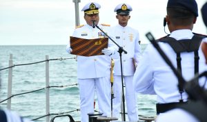 INEWSFAKTA.COM | TNI AL, Sabang,- Komandan Pangkalan TNI AL (Danlanal) Sabang Kolonel Laut (P) Sadimin, S.E., M.Tr. Opsla., didampingi Ketua Cabang 3 Daerah Kodaeral I Gabungan Jalasenastri Koarmada RI Ny. Widya Sadimin menghadiri Upacara Ziarah Nasional dalam rangka memperingati Hari Ulang Tahun (HUT) Ke-80 Tentara Nasional Indonesia (TNI) dengan tema “TNI Prima, TNI Rakyat, Indonesia Maju” yang berlangsung di Taman Makam Pahlawan, Gampong Peuniti, Kecamatan Baiturrahman, Kota Banda Aceh, Jum’at (3/10/2025).