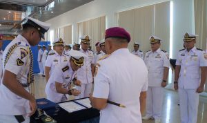 INEWSFAKTA.COM | TNI AL, Sabang,- Komandan Pangkalan TNI AL (Danlanal) Sabang Kolonel Laut (P) Sadimin, S.E., M.Tr. Opsla., didampingi Ketua Cabang 3 Daerah Kodaeral I Gabungan Jalasenastri Koarmada RI Ny. Widya Sadimin menghadiri Upacara Ziarah Nasional dalam rangka memperingati Hari Ulang Tahun (HUT) Ke-80 Tentara Nasional Indonesia (TNI) dengan tema “TNI Prima, TNI Rakyat, Indonesia Maju” yang berlangsung di Taman Makam Pahlawan, Gampong Peuniti, Kecamatan Baiturrahman, Kota Banda Aceh, Jum’at (3/10/2025).