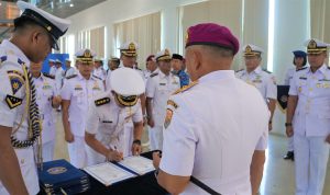 INEWSFAKTA.COM | TNI AL, Sabang,- Komandan Pangkalan TNI AL (Danlanal) Sabang Kolonel Laut (P) Sadimin, S.E., M.Tr. Opsla., didampingi Ketua Cabang 3 Daerah Kodaeral I Gabungan Jalasenastri Koarmada RI Ny. Widya Sadimin menghadiri Upacara Ziarah Nasional dalam rangka memperingati Hari Ulang Tahun (HUT) Ke-80 Tentara Nasional Indonesia (TNI) dengan tema “TNI Prima, TNI Rakyat, Indonesia Maju” yang berlangsung di Taman Makam Pahlawan, Gampong Peuniti, Kecamatan Baiturrahman, Kota Banda Aceh, Jum’at (3/10/2025).