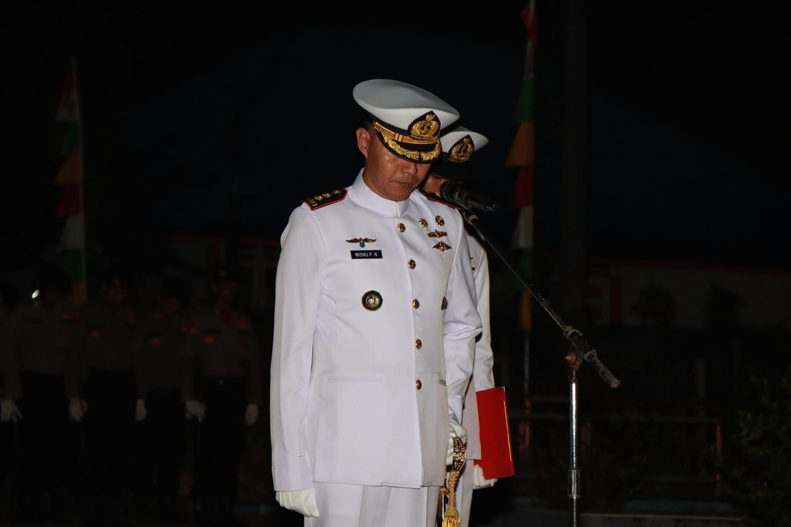 Kegiatan yang digelar pada malam hari tersebut berlangsung khidmat, dengan Komandan Pangkalan TNI Angkatan Laut Simeulue Letkol Laut (P) Wisnu Pryangga N, S.T., M.Tr.Opsla., bertindak sebagai Inspektur Upacara. Hadir dalam kegiatan tersebut jajaran Forkopimda, TNI-Polri, serta para pejabat daerah.