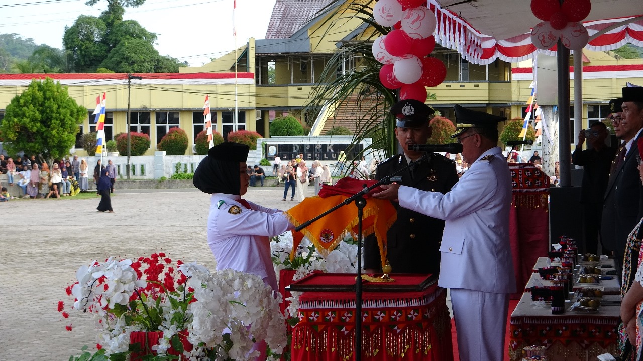 Danlanal Simeulue Hadiri Upacara Penurunan Bendera Merah Putih Pada Peringatan HUT Ke-80 Kemerdekaan RI di Kabupaten Simeulue