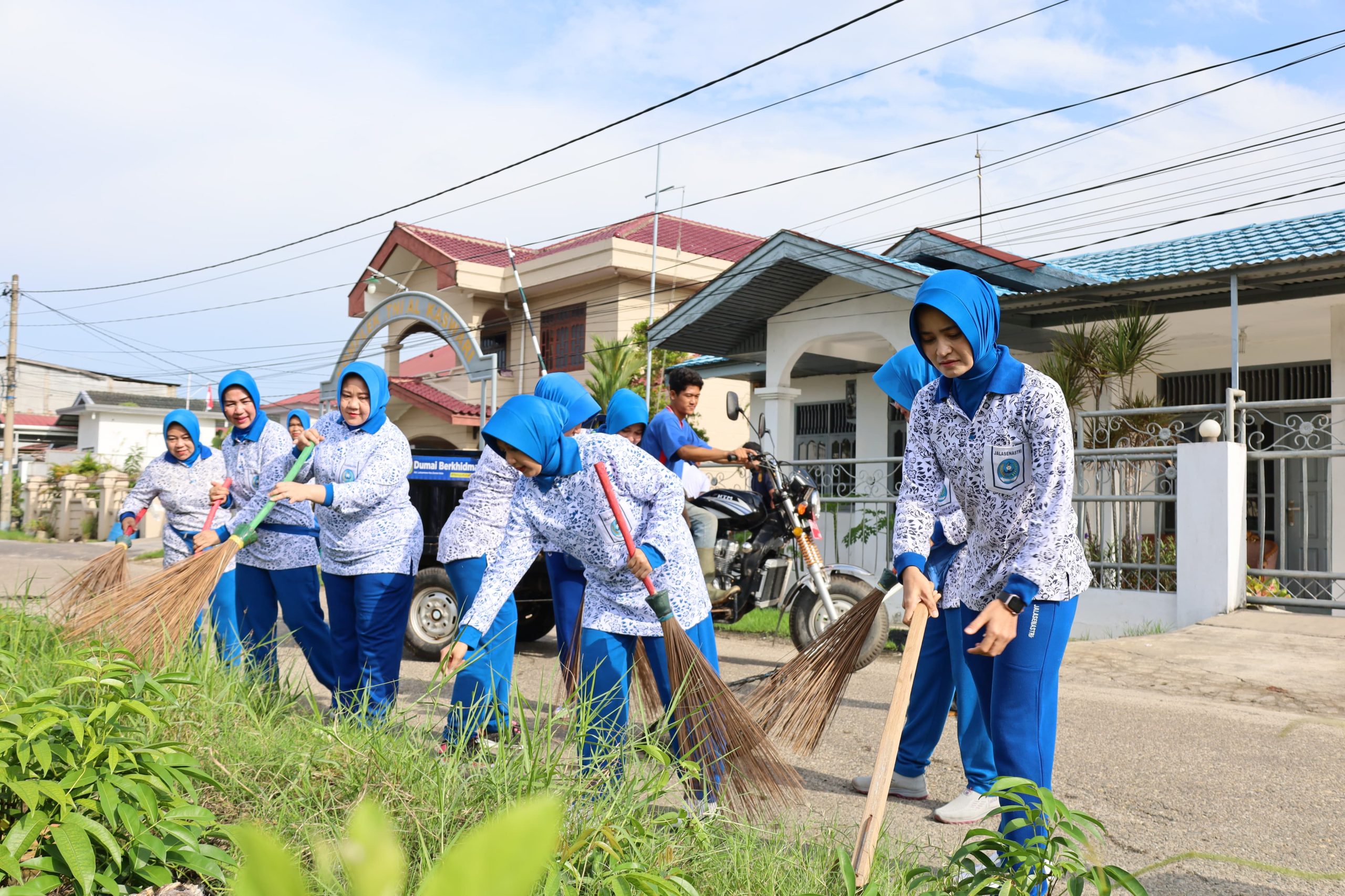 INEWSFAKTA.COM | TNI AL, Dumai,- Dalam rangka menjaga kebersihan dan keindahan lingkungan sekitar, Komandan Lanal Dumai Kolonel Laut (P) Abdul Haris didampingi Ketua Jalasenastri Cabang 4 Korcab l DJA l Ny. Dewi Abdul Haris bersama Prajurit Lanal Dumai melaksanakan kerja bakti bersama warga setempat membersihkan lingkungan sekitar Komplek Mess Prajurit Lanal Dumai, Selasa (15/4/2025).
