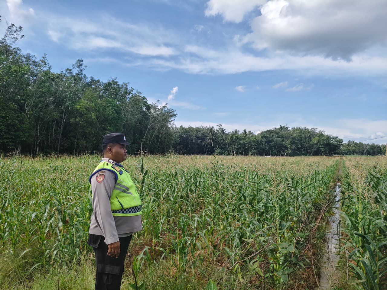 Dorong Ketahanan Pangan! Bripka, Purwanto, Cek Pertumbuhan Jagung Milik Di Desa Riang Bandung Ilir