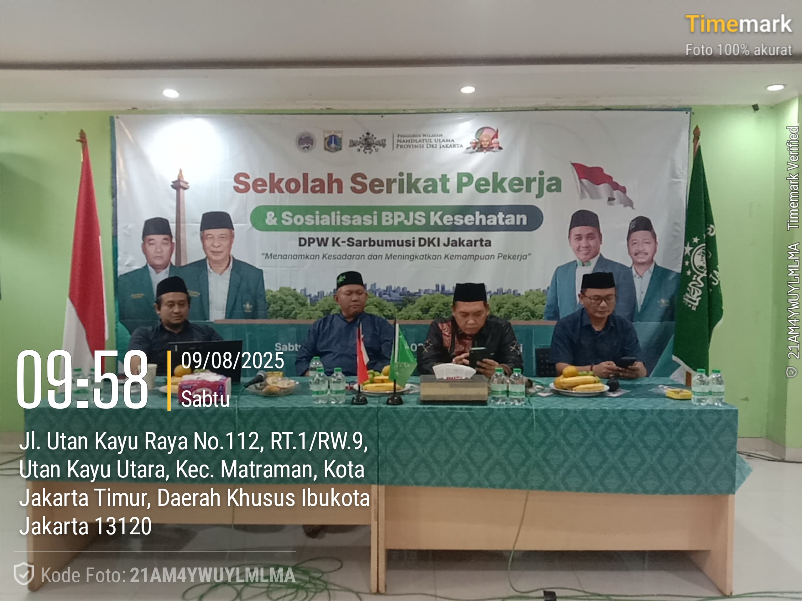 INEWSFAKTA.COM | Jakarta – Dewan Pimpinan Wilayah Konfederasi Serikat Buruh Muslimin Indonesia (DPW K-Sarbumusi) DKI Jakarta menggelar kegiatan sosialisasi BPJS Kesehatan dengan mengusung tema Sekolah Serikat Pekerja”, bertempat di Kantor DPW K-Sarbumusi, Jalan Utan Kayu, Matraman Raya, Jakarta Timur, Sabtu (9/8/2025).