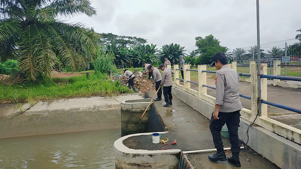 INEWSFAKTA.COM | Oku Timur – Kapolsek Buay Madang, Polres Oku Timur, AKP, Suwandi, bersama jajaran pimpin giat kurve (Kerja Bakti) membersihkan Saluran air di tanggul irigasi Komering Di desa Kurungan Nyawa Kec. Buay Madang Kab. OKU Timur.Kegiatan tersebut dalam rangka mendukung Gerakan Indonesia “ASRI” (Aman, Sehat, Resik, Indah) serta mendukung Implementasi program nasional gerakan indonesia ASRI, Sabtu (07/03/2026).