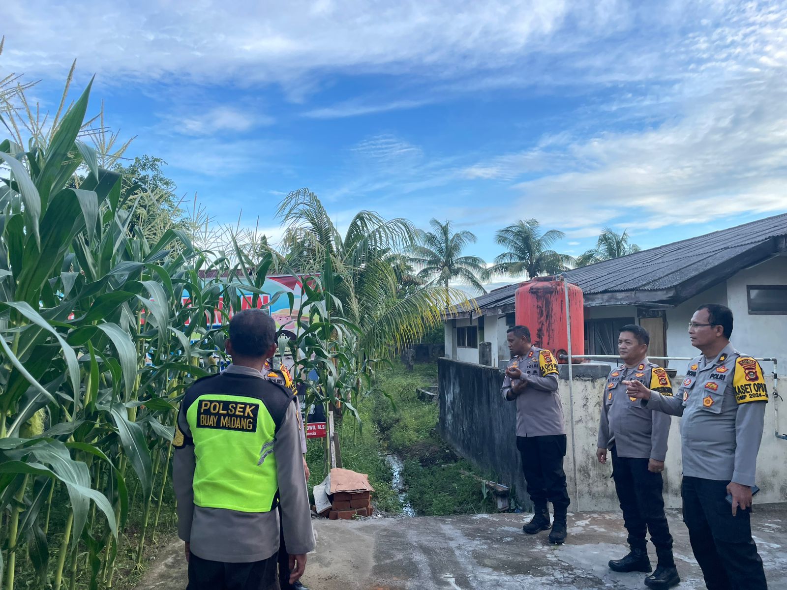 INEWSFAKTA.COM | Oku TIMUR  – Polsek Buay Madang, Polres Oku Timur, Polda Sumsel , dampingi Kapolres OKU Timur AKPB Kevin Leleury S.I.K.,M.Si bersama PJU Polres OKU Timur meninjau langsung kebun Jagung manis yang berada di belakang halaman Mako Polsek Buay Madang, Kabupaten Oku Timur dalam rangka mendukung Program ketahanan pangan nasional, Kamis (16/01/2025).