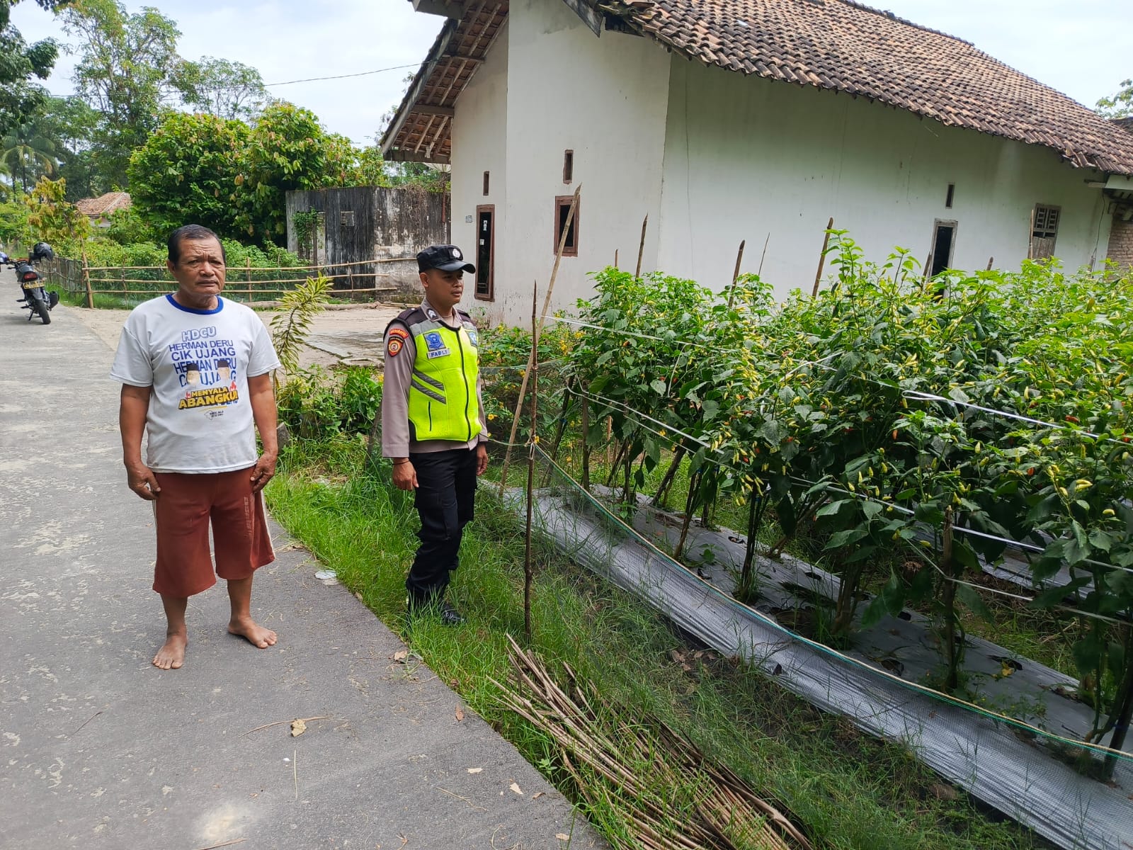 INEWSFAKTA.COM | Oku Timur – Bhabinkamtibmas Polsek Buay Madang, Polres Oku Timur, Polda Sumsel, melaksanakan pengecekan ketahanan pangan bergizi di pekarangan milik warga Desa Binaan yang dimanfaatkan untuk ditanami Cabai dengan luas lahan 5 X 10 M² di Desa Kurungan Nyawa , Kecamatan, Buay Madang, Kab. Oku Timur, Senin (26/05/2025).