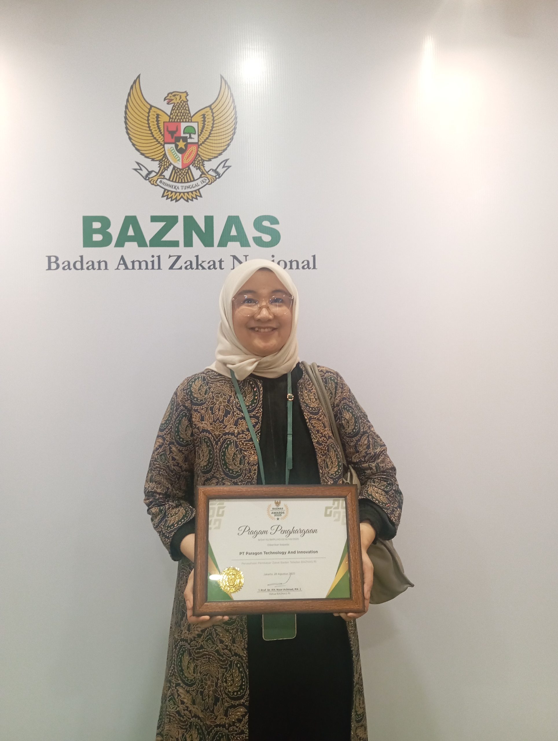 Kepala CSR PT Paragon, Suci Henrina, menyampaikan rasa syukur dan terima kasih atas apresiasi yang diberikan BAZNAS.