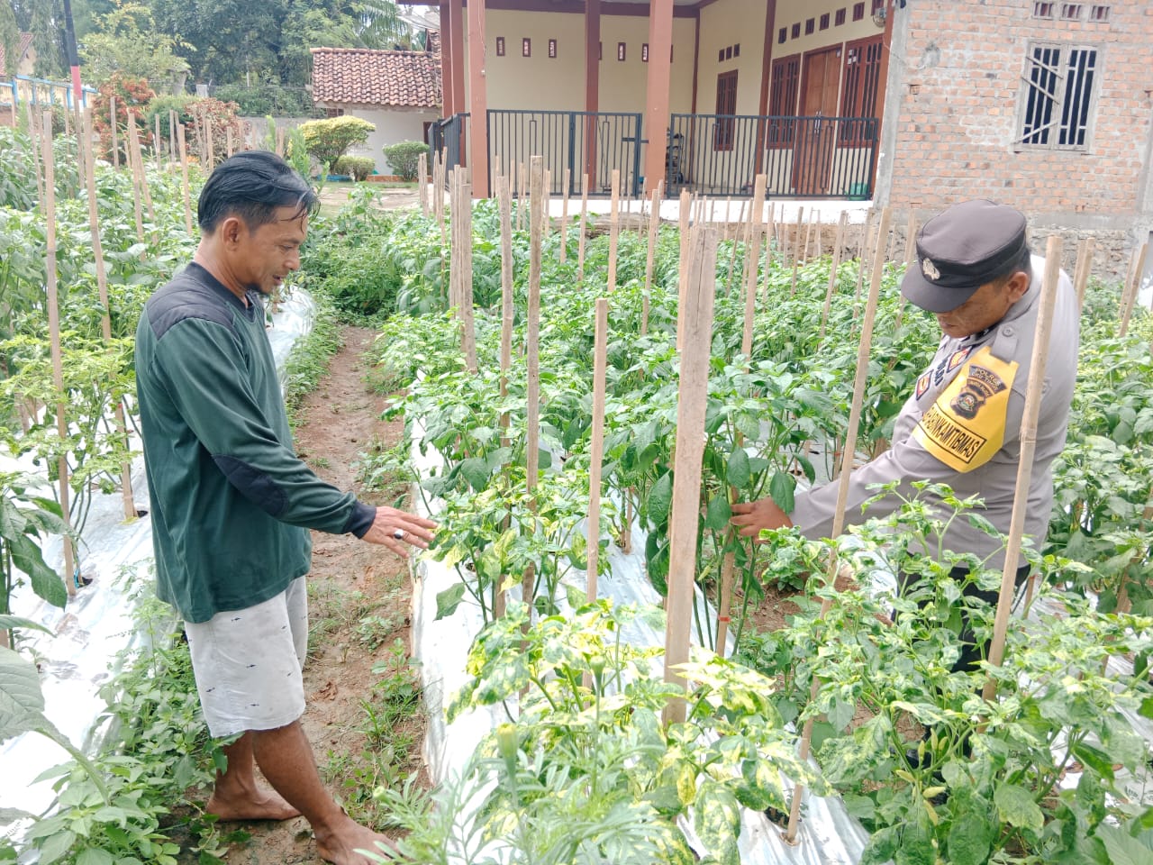 Dalam kunjungannya, Bhabinkamtibmas Polsek Madang Suku II AIPDA Devi Nurtanio berdialog langsung kepada pemilik tanaman Cabai untuk mengetahui proses penanaman, perawatan tanaman, dan perkembangan hasil pertanian.