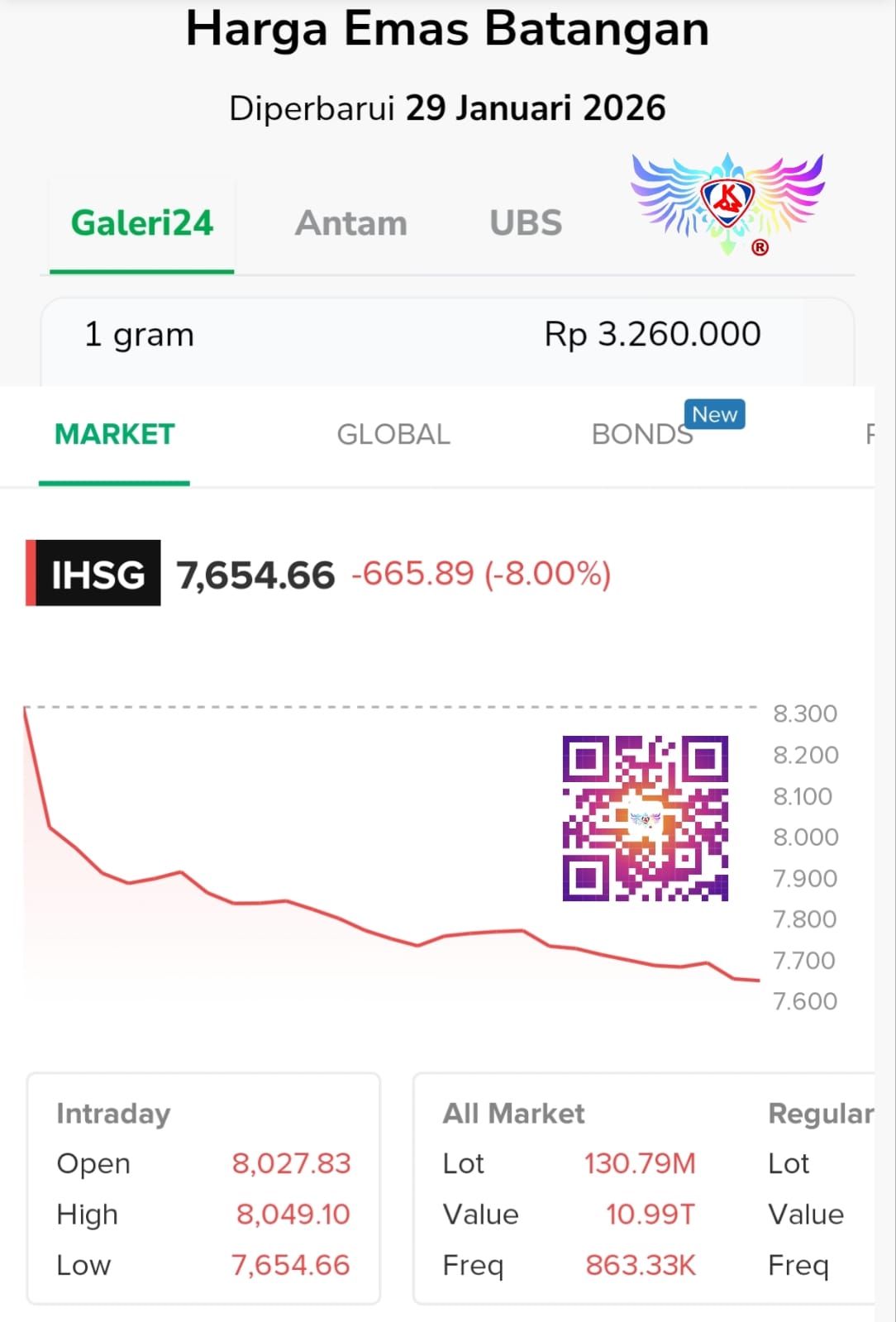 INEWSFAKTA.COM | JAKARTA, 29-1-2026 — Indeks Harga Saham Gabungan (IHSG) mengalami tekanan signifikan dalam dua hari perdagangan terakhir seiring memburuknya sentimen investor terhadap pasar saham Indonesia. Pelemahan ini dipicu kombinasi faktor eksternal dan internal, mulai dari penurunan rekomendasi saham Indonesia oleh Goldman Sachs menyusul peringatan MSCI terkait risiko kelayakan investasi (investability), hingga meningkatnya kekhawatiran akan potensi arus keluar dana asing. Sentimen negatif tersebut diperkuat oleh kondisi pasar global yang masih diliputi ketidakpastian, di tengah sikap investor yang semakin selektif terhadap pasar negara berkembang, sehingga mendorong aksi jual besar-besaran di pasar saham domestik.