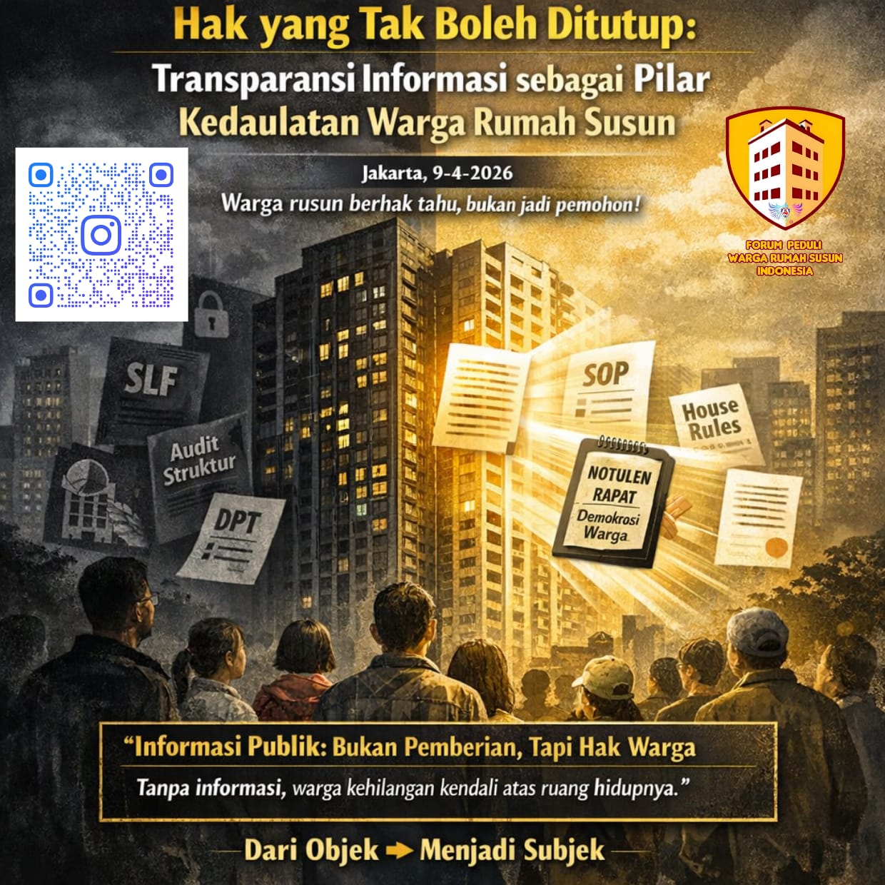 INEWSFAKTA.COM | Jakarta, 9-4-2026 – Di banyak kompleks rumah susun di Indonesia, persoalan klasik terus berulang: warga kesulitan mengakses informasi dasar tentang tempat tinggalnya sendiri. Dari Sertifikat Laik Fungsi (SLF), hasil audit struktur bangunan, hingga Daftar Pemilih Tetap (DPT) dalam proses pemilihan pengurus—semuanya kerap diperlakukan sebagai “dokumen internal” yang hanya bisa diakses segelintir pihak.