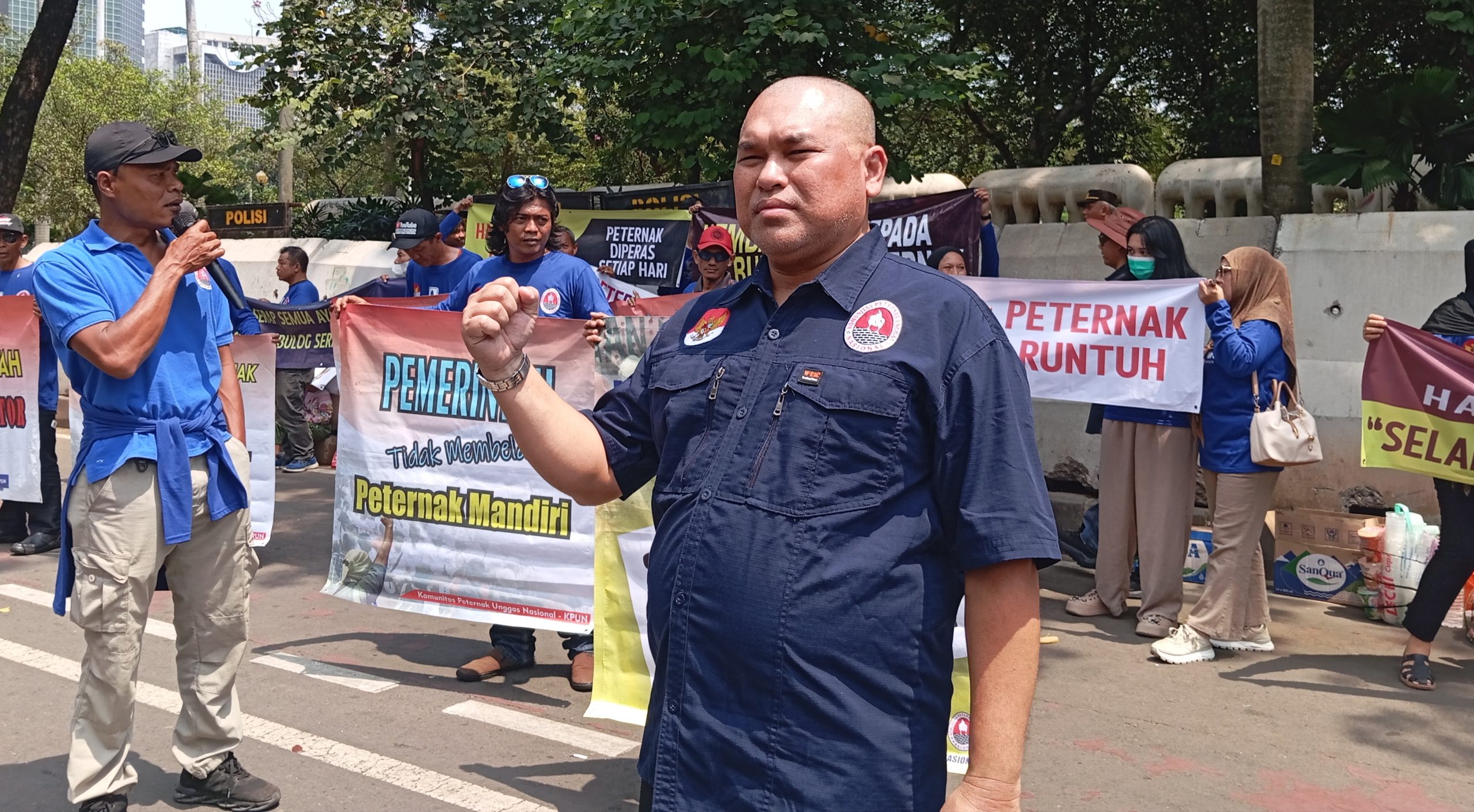 INEWSFAKTA.COM | JAKARTA — Puluhan peternak ayam yang tergabung dalam Komunitas Peternak Unggas Nasional (KPUN) menggelar aksi damai di depan Istana Negara (Silang Monas) dan Kantor Kementerian Koordinator Bidang Pangan, Kamis (9/10/2025).