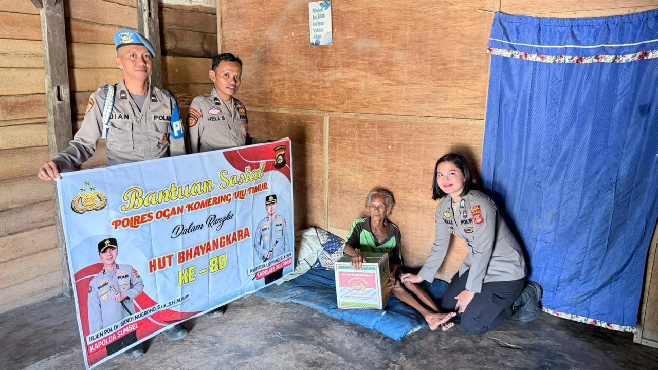 INEWSFAKTA.COM|OKU TIMUR – Polsek Buay Madang, Polres Oku Timur, Polda Sumsel, sambut peringatan Hari Bhayangkara ke-80 Tahun 2026, jajaran Polsek Buay Madang menunjukkan kepedulian sosial dengan menyalurkan paket bantuan sembako kepada warga lansia dan kurang mampu di wilayah hukumnya, pada Jumat (17/04/2026).