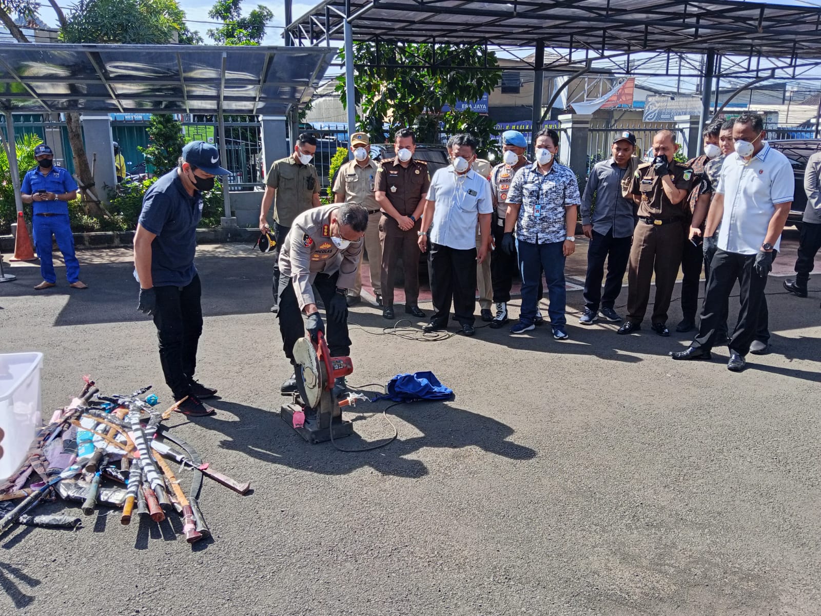 Rangkaian yang dimulai sejak pagi ini diawali dengan pembukaan, sambutan Kepala Kejari, pembacaan doa, sesi foto bersama, dan dilanjutkan dengan pemusnahan berbagai jenis barang bukti hasil tindak pidana. Mulai dari buku, pakaian, alat elektronik, senjata tajam, narkotika, psikotropika, hingga obat-obatan terlarang dan rokok ilegal tanpa pita cukai.