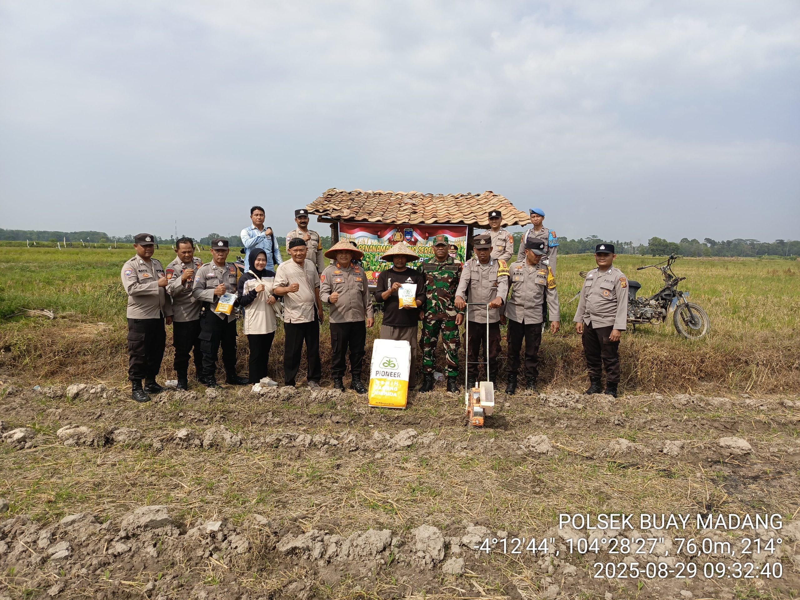 INEWSFAKTA.COM | Oku Timur – Kapolsek Buay Madang, Polres Oku Timur, Polda Sumsel, bersama jajaran hadiri kegiatan Launching Penanaman jagung serentak 1 Desa 1 Hektar yang berlokasi di Rt. 005 Rw. 005 Dusun Jaya Makmur Desa Kurungan Nyawa Kec. Buay Madang Kab. OKU Timur. Kegiatan ini dalam rangka mendukung program ketahanan pangan nasional  gugus tugas Polri satu desa satu hektar, Sabtu (30/07/2025).