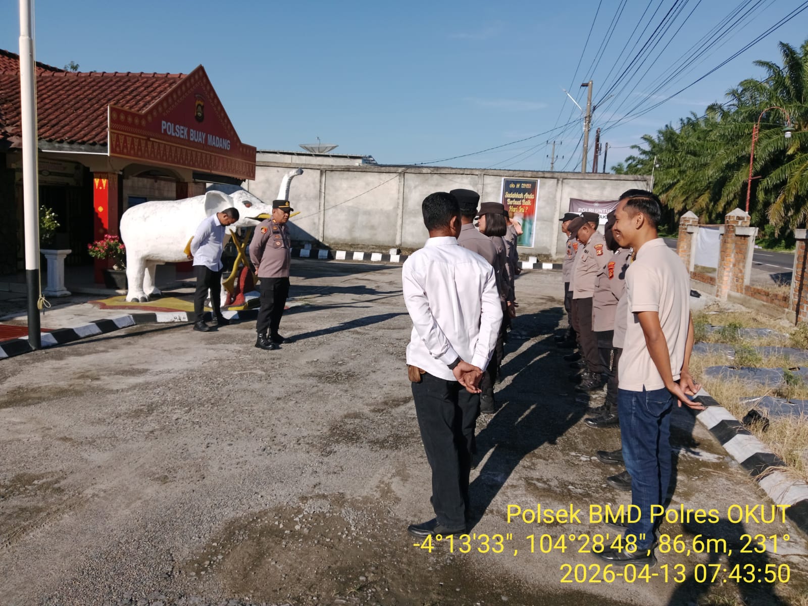 INEWSFAKTA.COM | Oku Timur – Kapolsek Buay Madang, Polres Oku timur, Polda Sumsel, AKP, Suwandi, sebelum pelaksanaan tugas sehari-hari, terlebih dahulu memimpin apel pagi dihalaman Mako Polsek Buay Madang. Apel pagi sebagai bentuk komunikasi dua arah antara pimpinan dan anggotanya, sekaligus sebagai sarana penyampaian arahan kebijakan pimpinan, agar tugas yang diemban dapat dilaksanakan sesuai dengan arah kebijakan pimpinan Polri, Sabtu (18/04/2026).