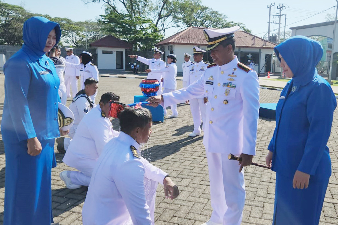 Acara dilanjutkan dengan tradisi penyiraman air kembang bagi prajurit yang naik pangkat oleh Komandan Satlinlamil 3 didampingi Ketua Cabang 4 Gabungan Jalasenastri Kolinlamil dan Perwira Staf.