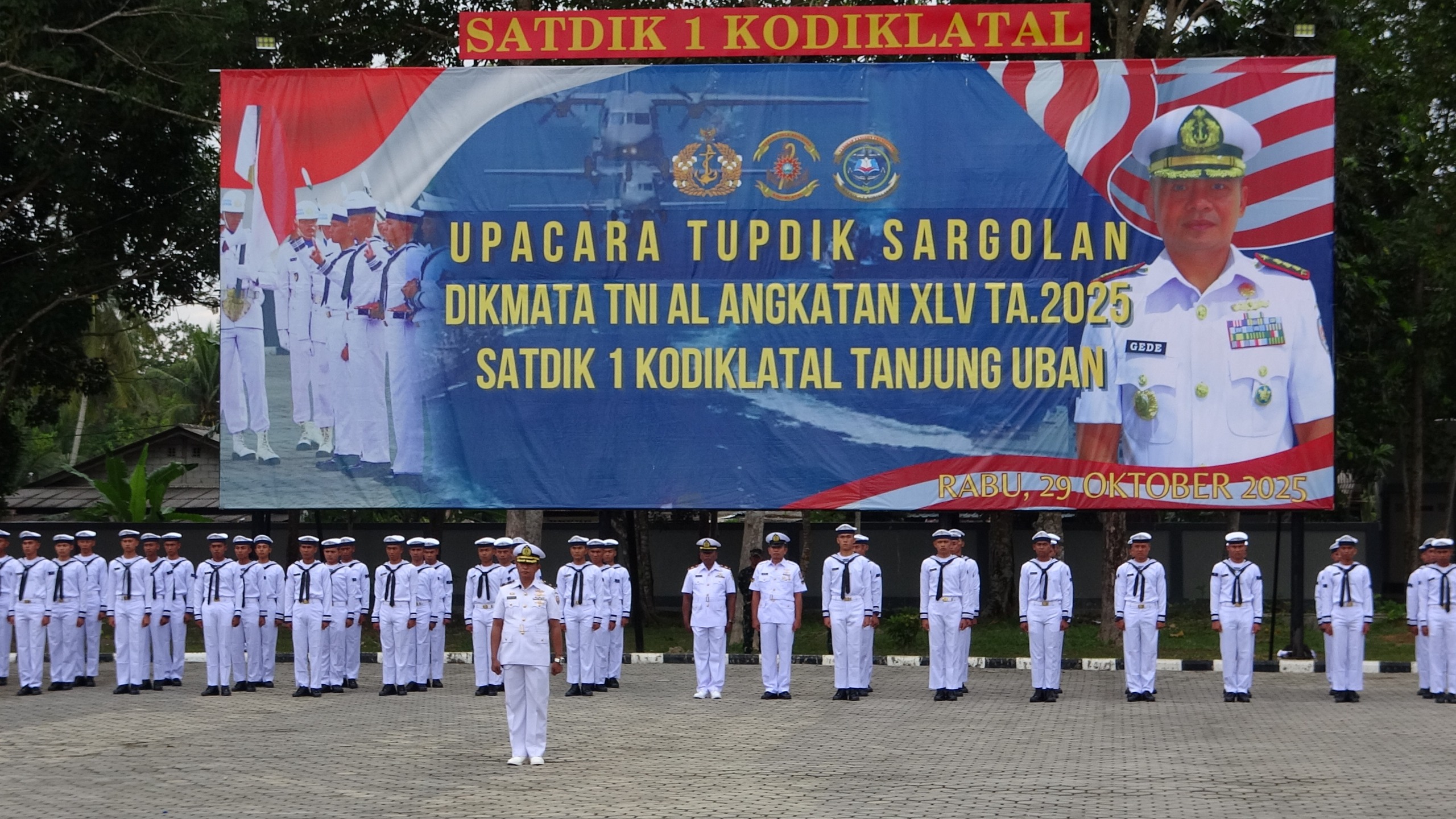 INEWSFAKTA.COM | TNI AL, Tanjung Uban,- Komandan Satdik 1 Kodiklatal Tanjung Uban Kolonel Laut (P) I Gede Merta Yasa, S.Sos., S.E.,M.M., secara resmi menutup Pendidikan Dasar Golongan Lanjutan Siswa Dikmata Angkatan XLV TA. 2025 Satdik 1 Kodiklatal Tanjung Uban, bertempat di Lapangan Laut Arafuru Mako Satdik 1 Tanjung Uban, Rabu (29/10/2025).