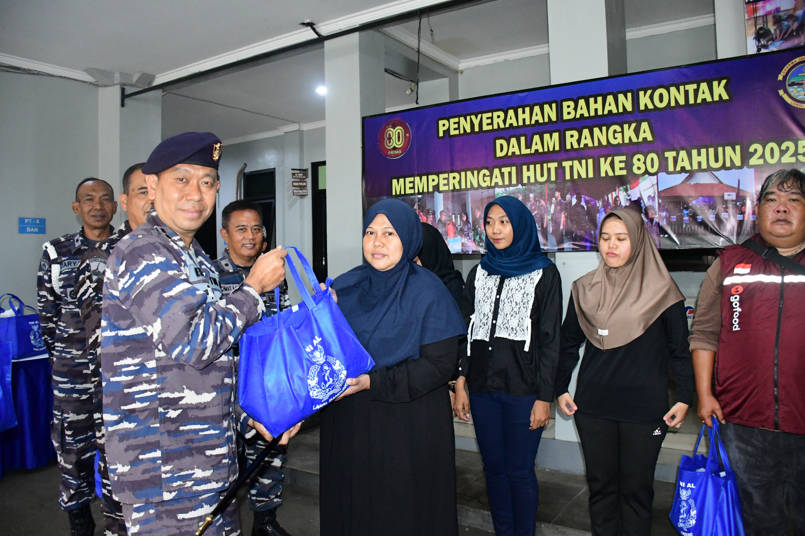 INEWSFAKTA.COM | TNI AL, Bandung,- Dalam rangka menyambut Hari Ulang Tahun (HUT) Ke-80 Tentara Nasional Indonesia (TNI) Tahun 2025, Pangkalan TNI Angkatan Laut (Lanal) Bandung menggelar kegiatan Bakti Sosial berupa pembagian paket sembako kepada masyarakat. Kegiatan dilaksanakan di Mako Lanal Bandung, Jalan Aria Jipang No. 8 Kota Bandung, Rabu (24/9/2025).