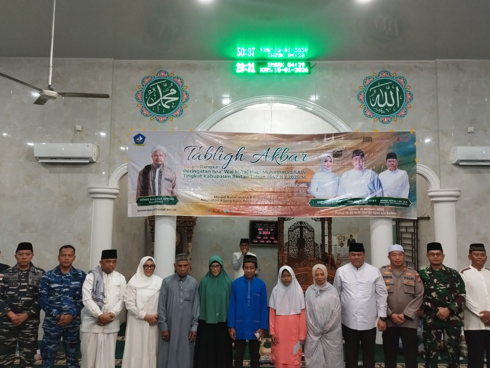 INEWSFAKTA.COM | TNI AL, Bintan,- Dalam rangka memperingati Isra’ Mi’raj Nabi Muhammad SAW tahun 1447 H/2026, Komandan Pos TNI AL (Posal) Kijang Lettu Laut (P) Ainur Rafik, mewakili Komandan Lanal Bintan turut hadir dalam acara yang digelar di Masjid Nurul Mubin Kolong Enam, Kecamatan Bintan Timur, Kabupaten Bintan. Kamis (15/01/2026).