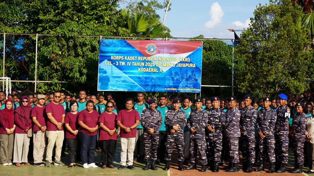 INEWSFAKTA.COM | TNI AL, Jayapura, Jumat 31 Oktober 2025,- Dibawah langit biru Jayapura yang sarat semangat juang, gema langkah tegas 500 pelajar mengguncang halaman SMAN 3 Jayapura (Sekolah Negeri Khusus Sains dan Bahasa, Papua). Disanalah, Komando Daerah Angkatan Laut (Kodaeral) X membuka kegiatan Perkemahan Sabtu-Minggu (Persami) Korps Kadet Republik Indonesia (KKRI) Gelombang Ke-3, sebuah ajang pembinaan karakter yang menyalakan bara kedisiplinan, kepemimpinan, dan jiwa kebangsaan di dada generasi muda Papua.