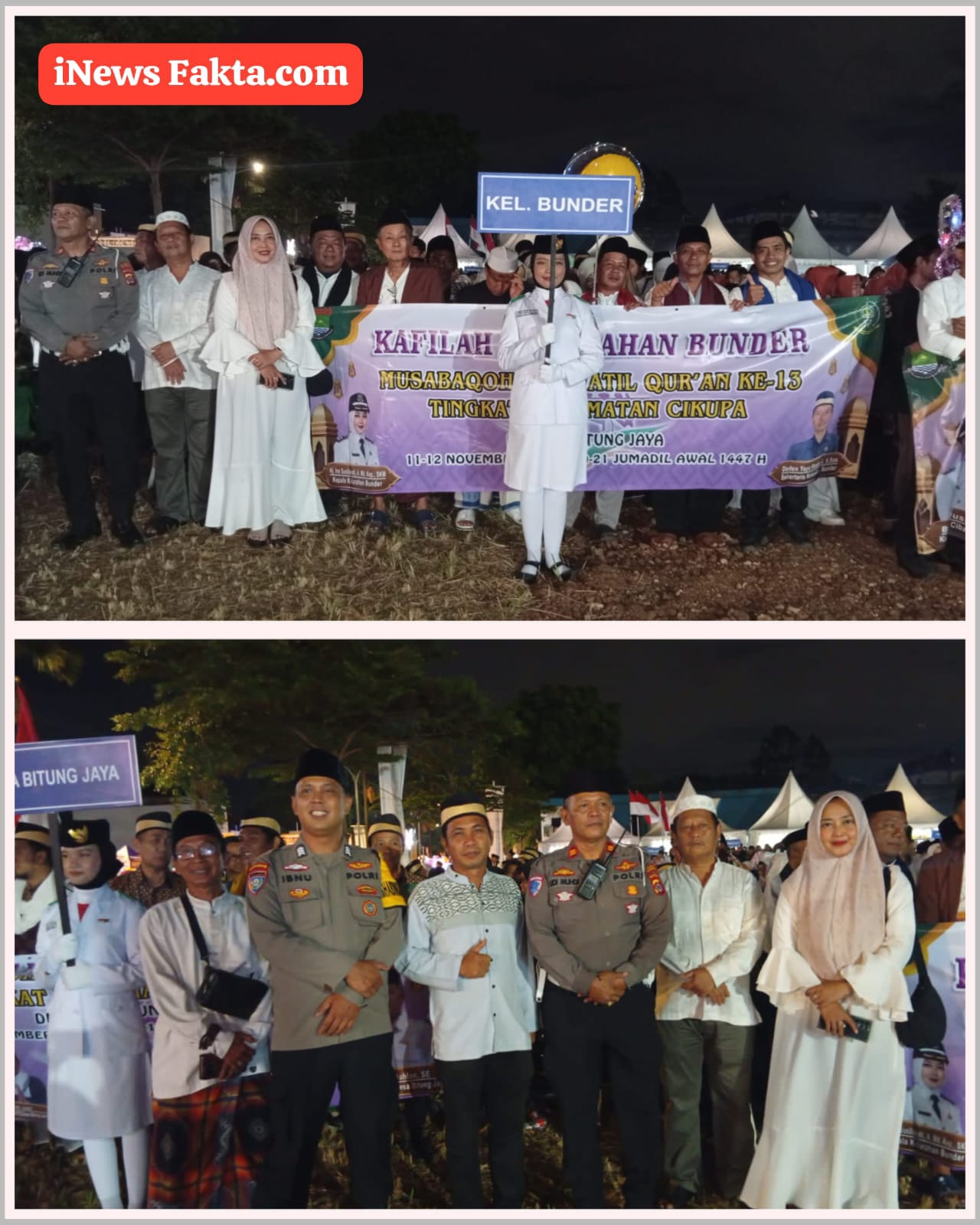 INEWSFAKTA.COM | Cikupa – Lurah Hj. Ine Susilawati.A.Md.,Kep, SKM., memimpin rombongan 37 peserta Devile Kafilah MTQ Kelurahan Bunder dalam acara Musabaqoh Tilawatil Qur’an (MTQ) ke-13 Tingkat Kecamatan Cikupa Kabupaten Tangerang di Desa Bitung Jaya pada 11-12 November 2025 selama 2 hari.