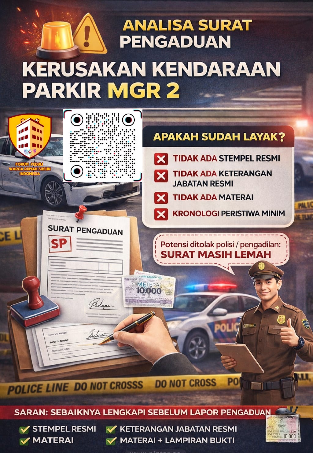 Mempelajari surat “ Laporan Pengaduan ” Terkait Dugaan Perusakan Kendaraan Warga di Area Parkir Apartemen